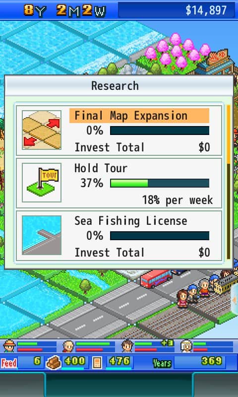 Fish Pond Park – стратегия на андроид, от известных разработчиков Kairosoft в которой вам предстоит построить свою базу отдыха. Занимайтесь строительством гостиниц, зон отдыха и открывайте для себя разнообразные достопримечательности которые приглянуться туристам, и они захотят посетить вашу базу отдыха. Предлагайте вашим туристам различные развлечения, включая увлекательную рыбалку в местных водоемах где обитают как мальки, так и огромные рыбы. Расширяйте свою базу отдыха и также увеличивайте пруд для большего развлечения. Для строительства в вашем арсенале будет большое количество различных приспособлений и предметов, так что вам некогда будет скучать.
