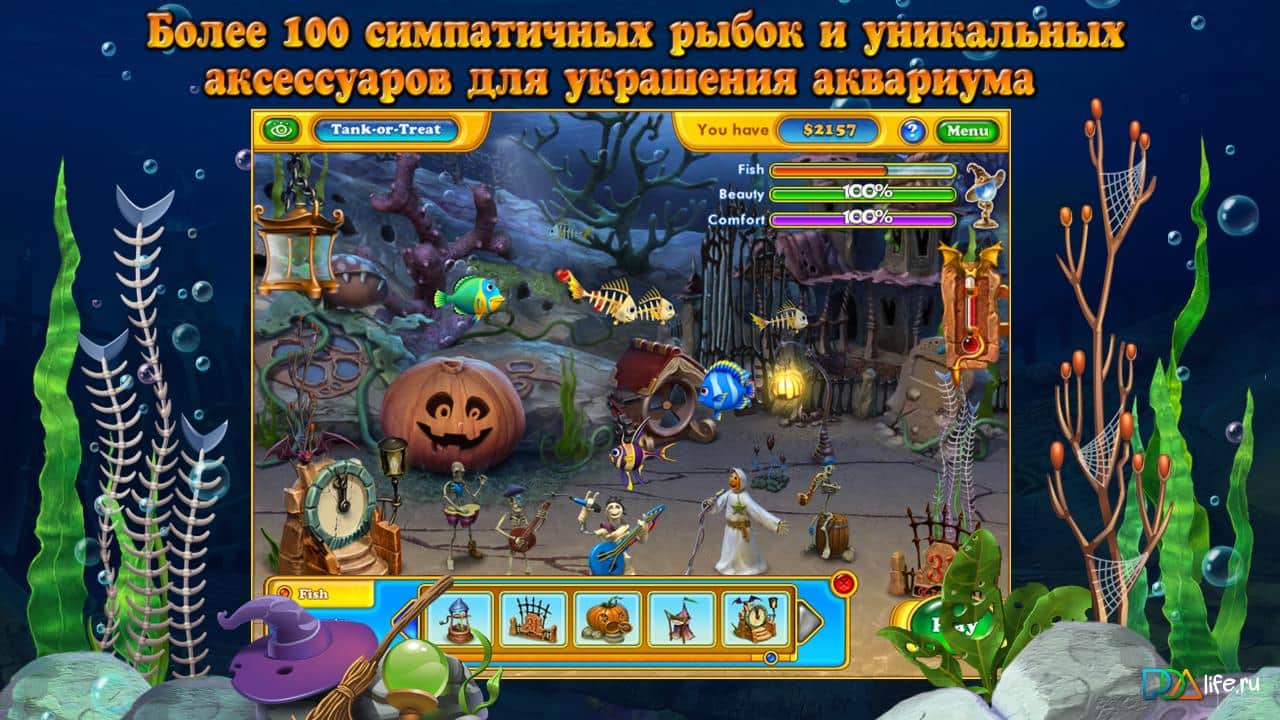 Fishdom Spooky HD - Красочная игра на андроид из разряда «три в ряд». Создайте свой собственный виртуальный аквариум, решая и открывая новых обитателей и украшения. Эта версия игры создана по мотивам праздника Хэллоуин. В вашем аквариуме будут плавать не только красивые рыбки, но и их скелеты.