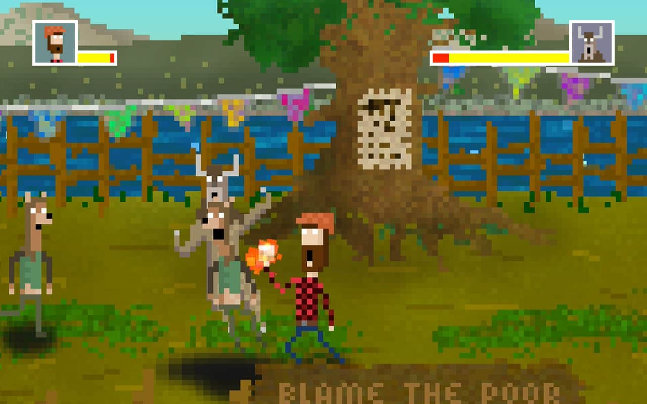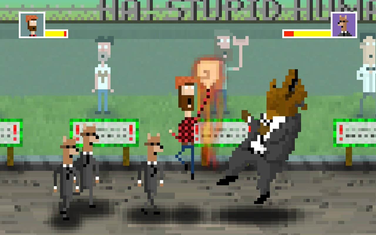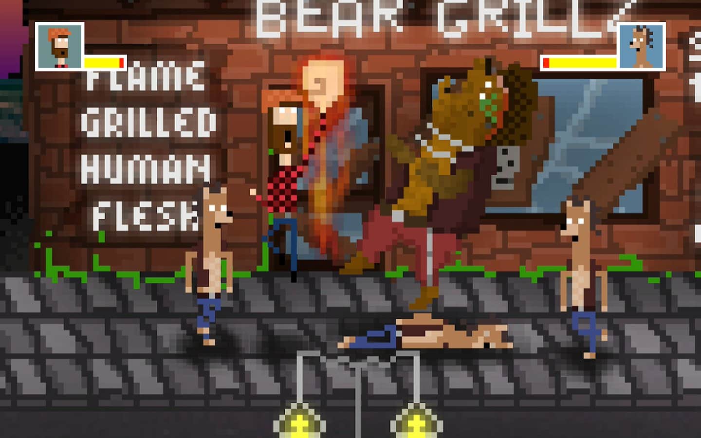 FIST OF AWESOME - игра на андроид в которой вы играете за Tim Burr. Его семья пропала, дом сгорел, а миром управляют медведи. Такое вот весёлое начало). В игре вам предстоит драться против различных диких животных, и даже динозавров. Хотите дать в морду медведю или вырубить с ноги оленя? Тогда играйте в эту безумную игру, а пиксельная графика только добавит игре определённый колорит.