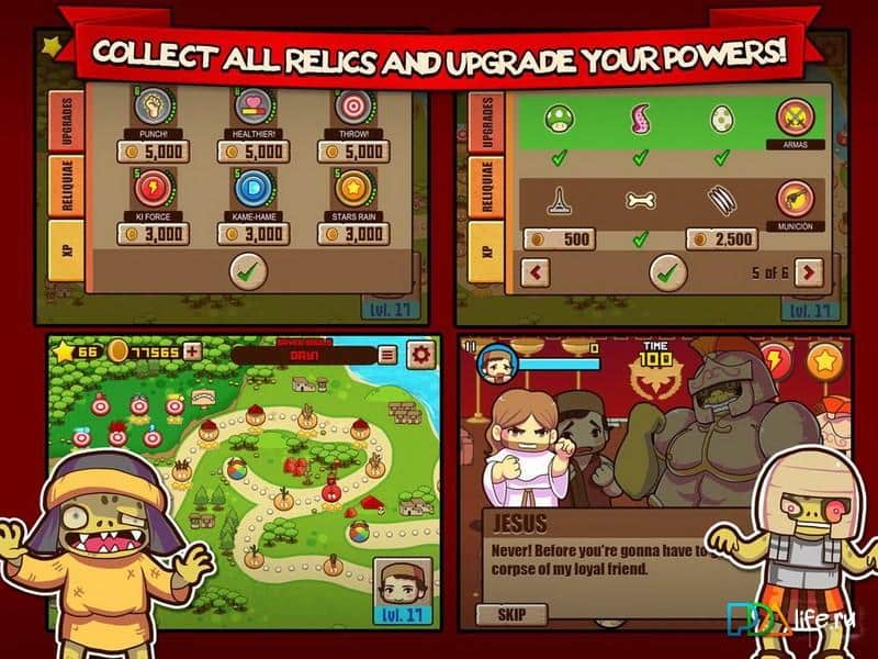Fist Of Jesus - юмористическая игра, которая расскажет историю приключений Иисуса и Иуды. Путешествуя по разным городам Иерусалима, Иисус решил воскресить Лазаря, но что-то пошло не так в его воскрешении, и он превратился в зомби. Сражайтесь с бесчисленным количеством зомби, в которых превратились ковбои, римская армия, мифологические существа и многие другие. Применяйте божественные бонусы для борьбы и справьтесь с этим бесчинством.