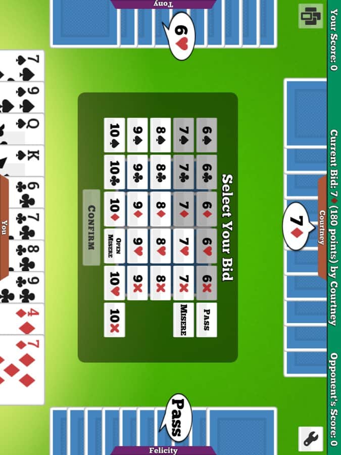 Five Hundred (500) – карточная игра на андроид, которая представляет собой австралийскую версию классической игры 500. В эту игру вы сможете играть в одиночном режиме против умного компьютера либо бросайте вызов реальным игрокам или своим друзьям и играйте с ними в режиме мультиплеер. Делайте свои ставки и раскладывайте карты стараясь собрать самую выгодную комбинацию и забрать огромный куш. Поднимайтесь как можно выше в таблице лидеров и прибегайте к помощи учебника, который научит вас правильно играть.