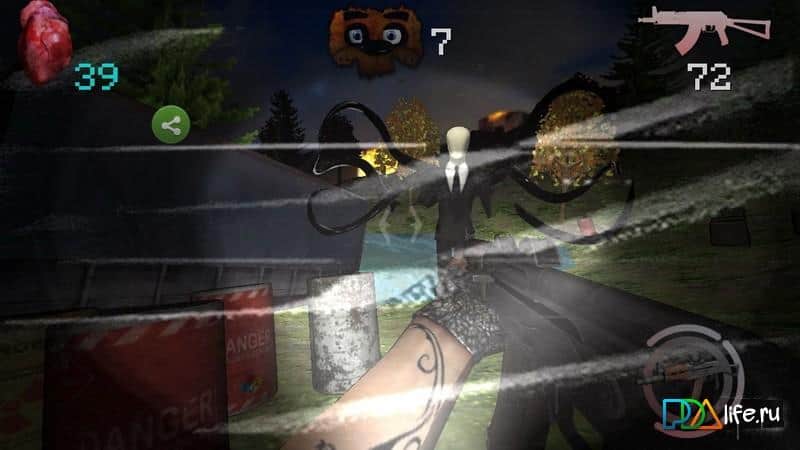 в этой игре на тебя тупо идут эти 2 персонажа и все, не пугают из кустов а тупо идут и все! да и такое ощущение что там некончаемое число типо клонов, пускай-бы зделали что бы они появлялись откуда не возьмись, да и с оружием нету интереса ходить, ну и графика двоечка! хотябы зделали так что бы нельзя было проходить сквозь стенку, короче говоря: еслибы тут можно было оценивать как в Play маркете то я бы поставил между 1-2, даже на тройку не тянет, неговоря уже о четверке или пятерке.