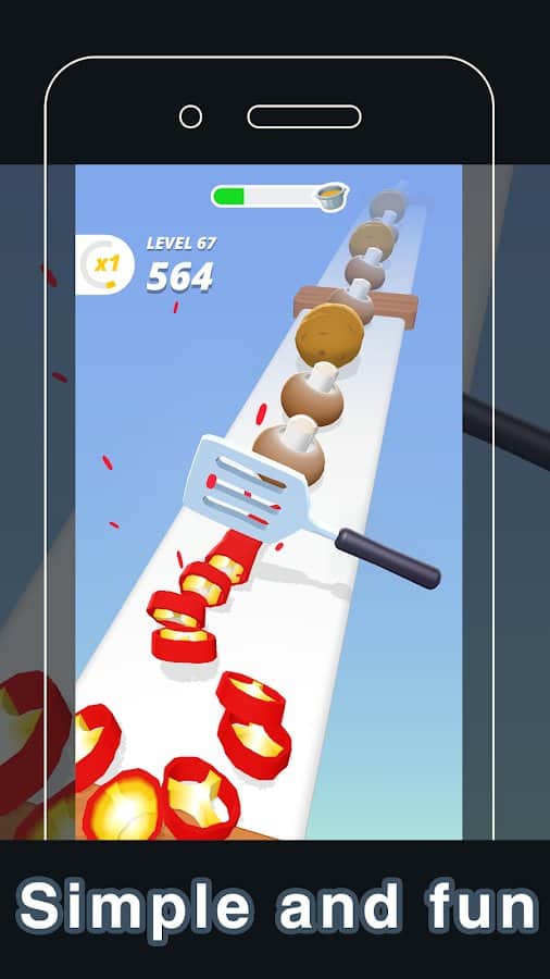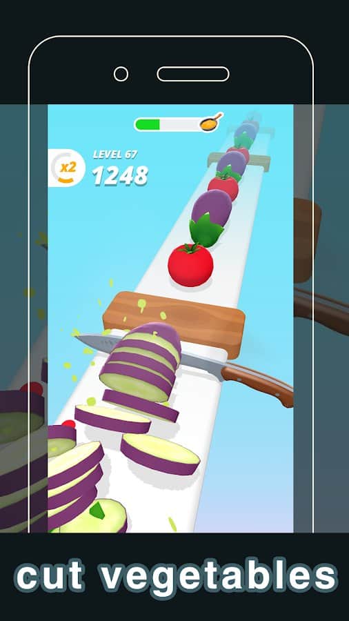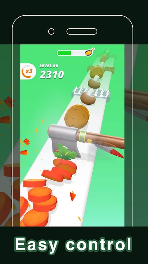 Five-Star Slice – увлекательный кликер на андроид, где вы будете с помощью одного пальца нарезать овощи и фрукты. Возьмите под свой контроль пиксельный кинжал и касайтесь экрана в нужный момент чтобы нарезать овощи и при этом не задеть многочисленные преграды. Положитесь на свою ловкость пальцев и отличную реакцию и делайте как можно больше нарезки чтобы сварить вкусный суп. Играйте в эту игру в любое свободное время и наслаждайтесь безудержным весельем и отличной графикой. Делайте нарезку под приятный саундтрек и открывайте для себя новые ножи и мечи.