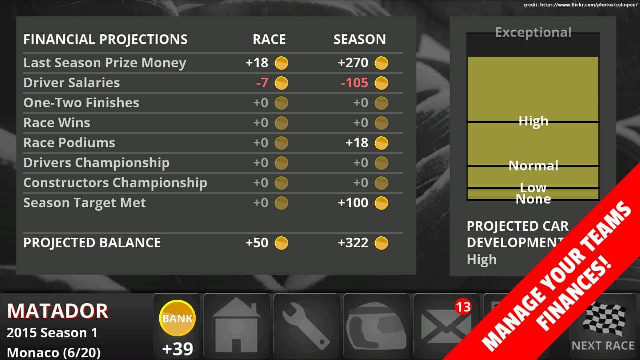 FL Racing Manager – симулятор менеджера на андроид, в котором вы будете управлять гоночной командой 2015 сезона. В ваши задачи будет входить управление учетными записями, модернизации ваших автомобилей и инвестировать деньги в исследования и разработку новых авто. Разрабатывайте свою систему движения по трассе машины с обгонами и схемами дозаправки и смены шин. Участвуйте в нескольких сезонах и добивайтесь лучших результатов от своей команды. Проверяйте безопасность ваших машин в пяти погодных условиях и наблюдайте за циклом водителей в пике их славы и отправляйте их в отставку, когда карьера водителя закончиться. В этой игре вашей главной задачей будет привести вашу команду к победе и заработать славу и деньги на этом.