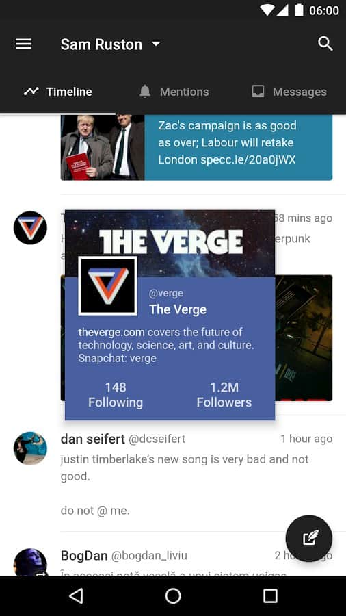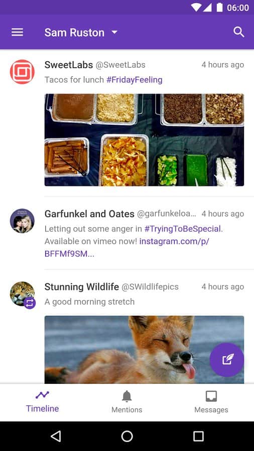 Flamingo for Twitter (Beta) - Красивый и удобный клиент для социальной сети твиттер. Здесь вы найдете множество функций, которые отсутствуют в стандартном клиенте. Так же помимо стандартных функций, вы можете менять внешний вид своего клиента, при этом придавая ему разных красок и рисунков. При всей своей функциональности, данный клиент почти не потребляет ресурсов смартфона, поэтому его по праву можно назвать одним из лучших в своем роде.