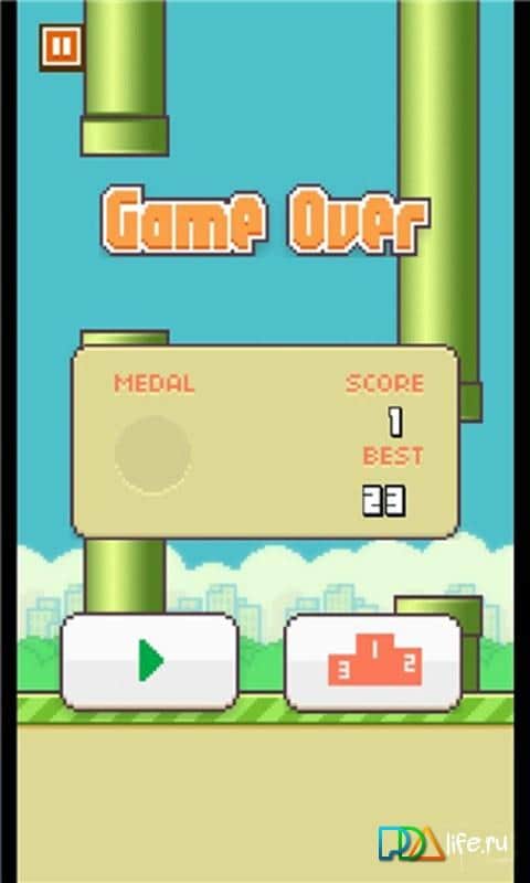 Flappy Bird - пиксельная аркада для windows phone про приключения маленькой птички в мире труб! Геймплей легок - простым тапом управляйте птичкой, поднимая и опуская ее по пути следования. Преодолевайте все трубы, проскальзывая в узкие проходы и не врезаясь в них! Динамично и сосредоточенно, попробуйте завоевать все возможные 4 медали!