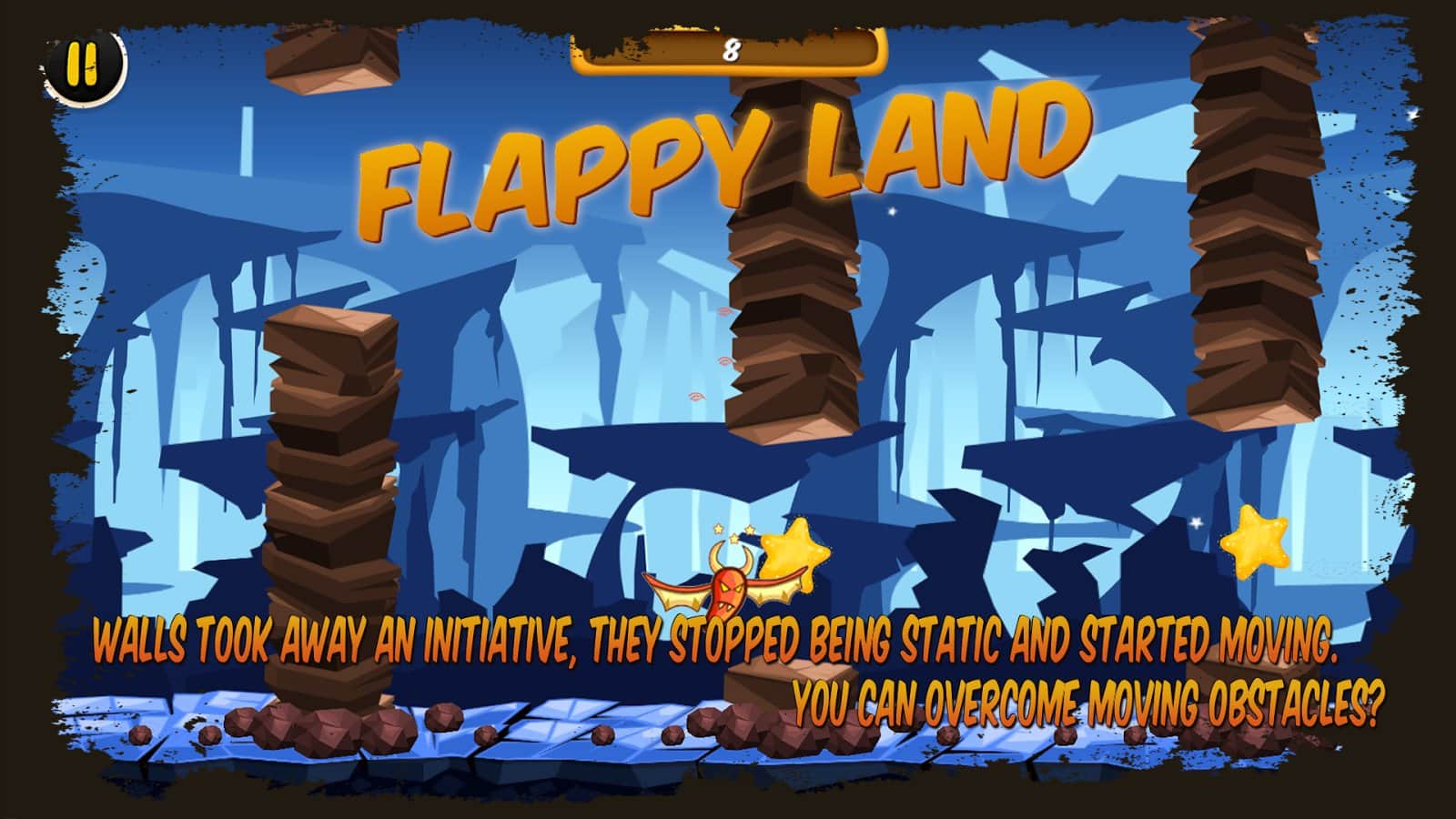Flappy Land – оригинальная игра на андроид, которая напоминает всем известную игру, только в этой вы сможете сами создавать свой мир и менять героев. В игре представлено большое разнообразие различных режимов таких как: классический где вы управляете героем, летающим через различные препятствия идущие сверху и низу. Второй режим, где вы делаете все тоже самое только в другом направлении, также есть режим который меняет силу гравитации и заставляет вас прыгать вниз. А еще игра порадует вас дополнительными режимами, где все ускоряется в два раза и препятствия начинают двигаться. Попробуйте все шесть режимов и объедините их между собой, сделав уникальной и неповторимой игру.