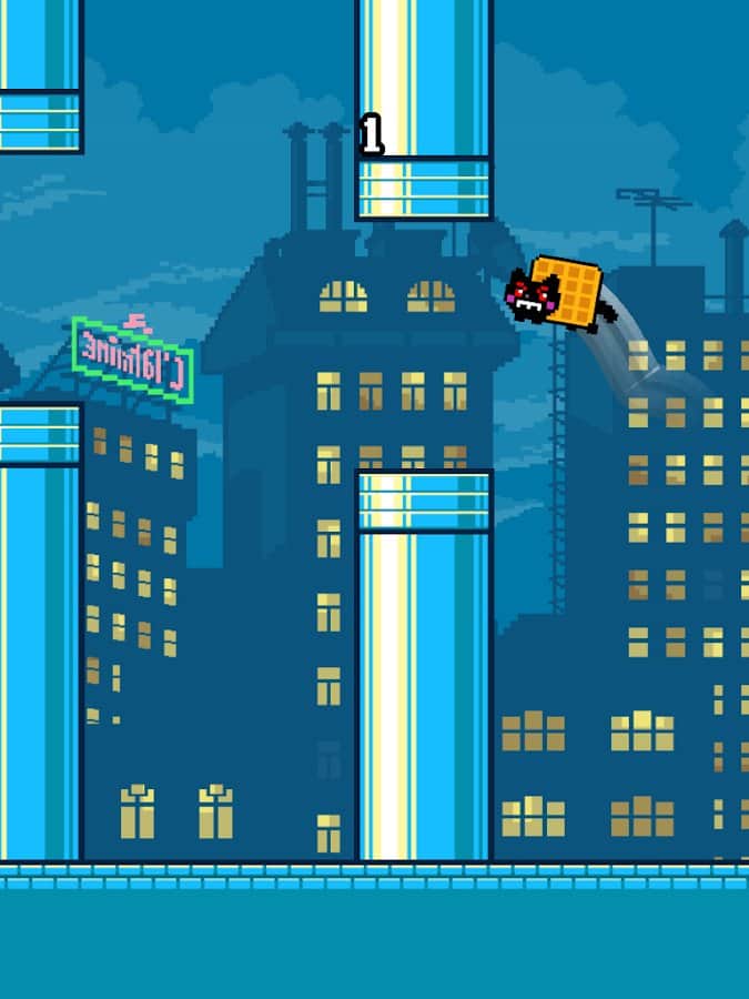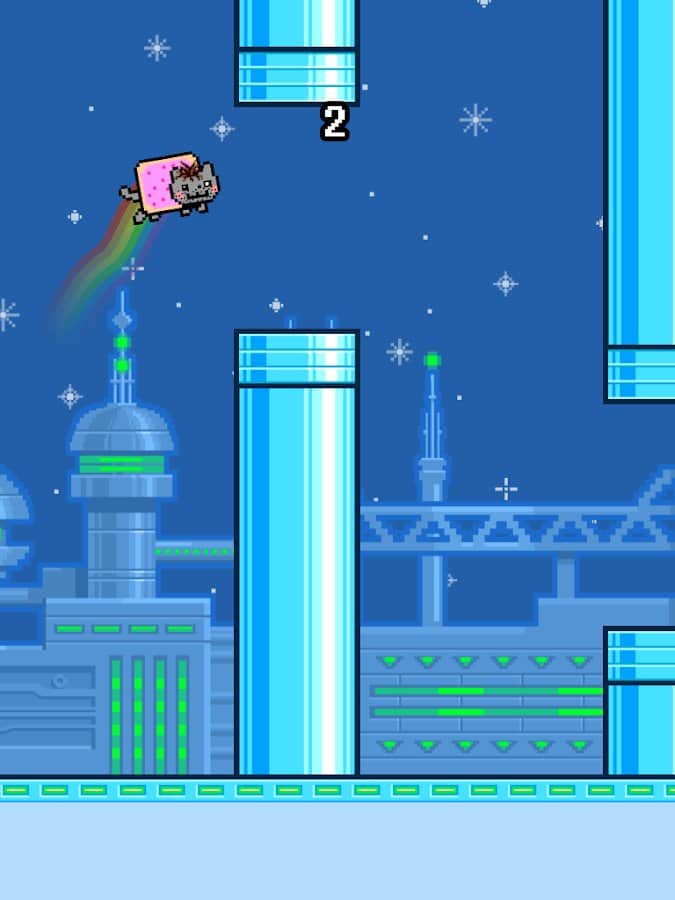 Flappy Bird - культовая аркадная игра которая обзавелась огромной армией поклонников. Радужный кот не менее знаменитый персонаж который выступил в главной роли в целой серии аркад. И вот студия isTom Games решила объединить эти игры в одном проекте под названием Flappy Nyan. И так, вам в роли полюбившейся котейки предстоит лавировать между трубами, при этом контролируя его движения по средствам своевременных тапов. При этом разработчики добавили массу игровых фич которые заметно разнообразят геймплей.