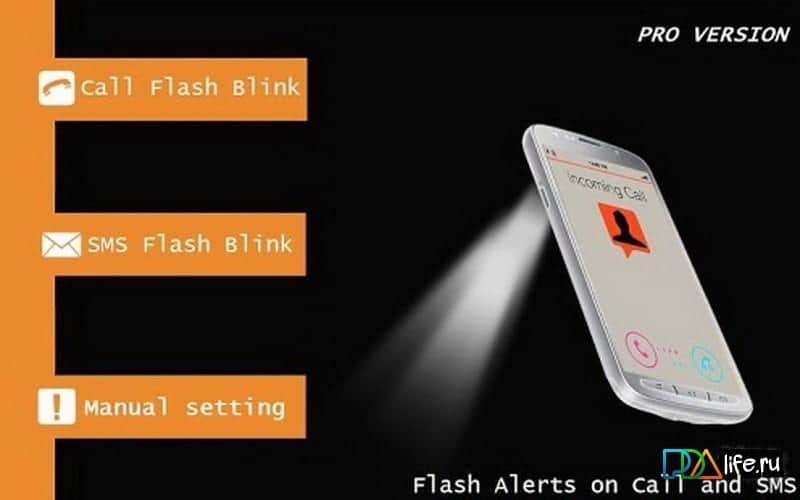 Flash Alerts on Call & SMS – приложение, с помощью которого можно настроить включение и моргание вспышки телефона во время приёма sms и звонков. При поступлении вызова, или нового текстового сообщения, вспышка будет мигать. Приложение полезно если у вас стоит бесшумный режим, мигания вспышки трудно не заметить. Легко найдите свой телефон в темноте. Особенности: