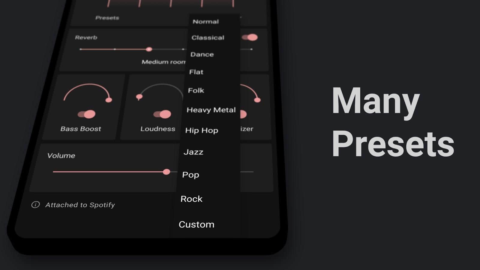 С помощью Flat Equalizer вы сможете улучшить качество звука на своем устройстве и усилить басы при проигрывании трека. Увеличивайте громкость, присоединяйтесь при помощи современной гарнитуры, пользуйтесь собственной библиотекой с любимыми музыкальными дорожками и плейлистами, выравнивайте звучание с применением 5-полосного эквалайзера. Встроенный 3D-виртуализатор позволит насладиться простым процессом и управлением функциями программы. Есть темная и светлая темы на выбор, несколько полезных пресетов по жанровым категориям и огромное количество эффектов.