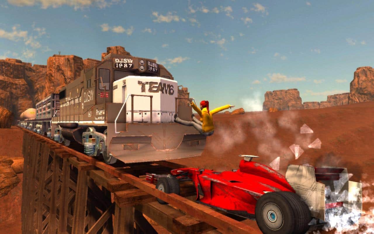 Flatout - Stuntman – это весёлая игра на Android в которой хорошенько разгоняемся на автомобиле, радуемся потокам воздуха, природе, птичкам и БАЦ !!! Лобовое столкновение на бешенной скорости в столб) Чем дальше летит ваш водитель и чем больше болезненных ощущений он получит, тем больше очков вы заработаете. Веселитесь)