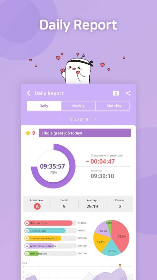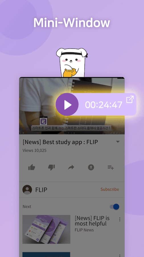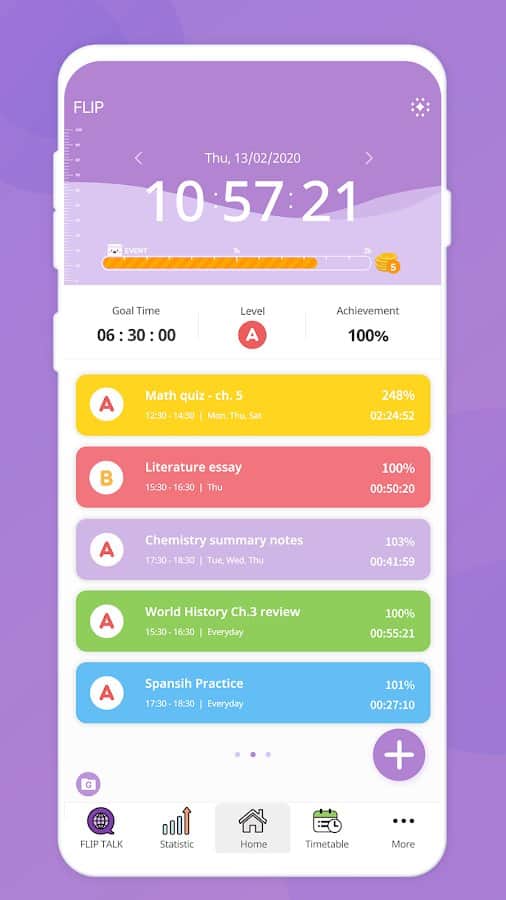 FLIP - ваш персональный помощник для правильного и рационального распределения времени. Таймер поможет вам измерить свой уровень концентрации и определить отвлекающие факторы для их блокировки. Приложение доступно в виде виджета – плавающего окна, которое можно накладывать поверх учебного процесса на вашем смартфоне. Отслеживайте факторы, влияющие на вашу обучаемость как положительно, так и отрицательно. Программа ориентируется на вашу сосредоточенность с учётом перерывов и обязательно поможет вам достичь успехов в учёбе!