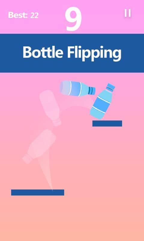 Flip Water Bottle – простая но затягивающая игра на андроид, где вы будете кидать бутылку вверх для того чтобы она приземлилась на полке. Задача в этой игре вам ясна, так что с помощью свайпов кидайте бутылку с водой так чтобы она встала на следующую полку и так до бесконечности. Кидайте бутылку и по ходу игры собирайте кубики льда, которые служат валютой в этой игре и помогут вам открыть новые бутылки. Если ваша бутылка соскользнет с полки и упадет вниз или вы промахнетесь, то вам придется начинать игру заново. Установите свой рекорд в этой игре и соревнуйтесь со своими друзьями за лучшие результаты.
