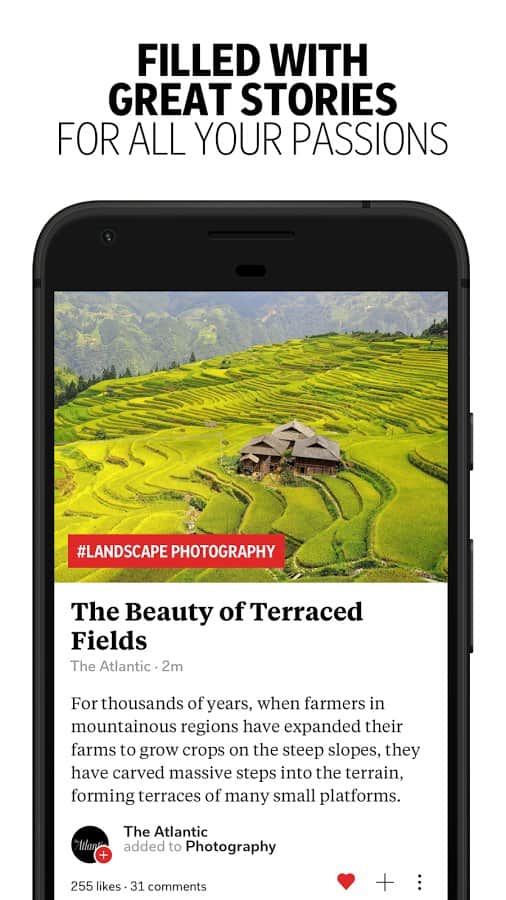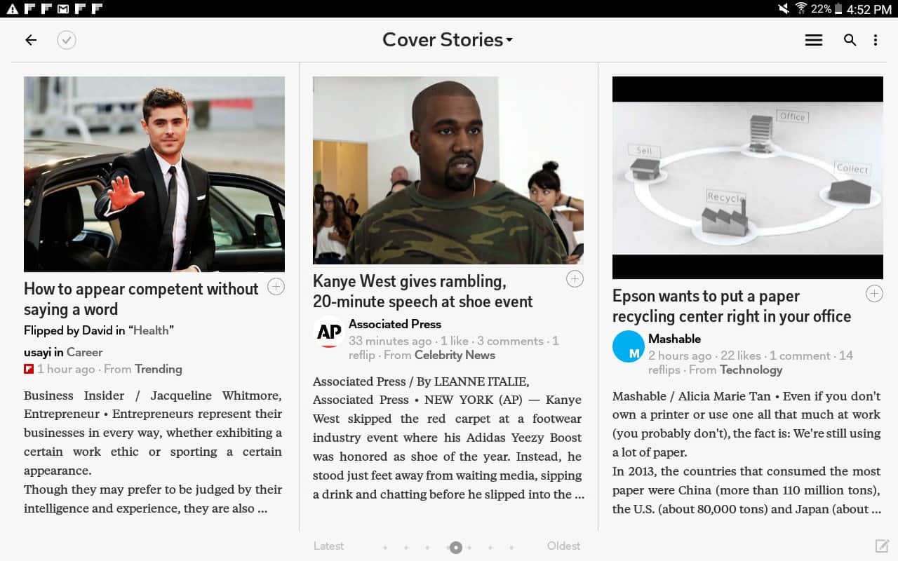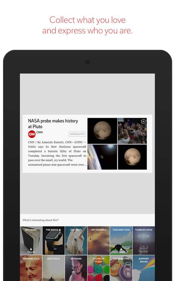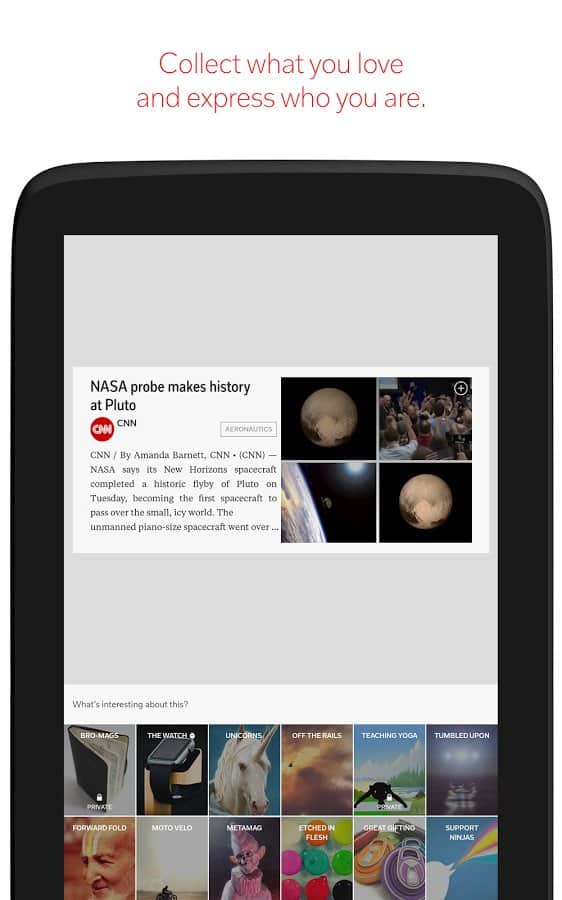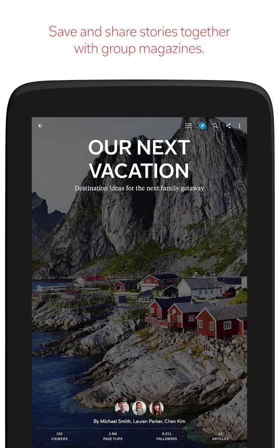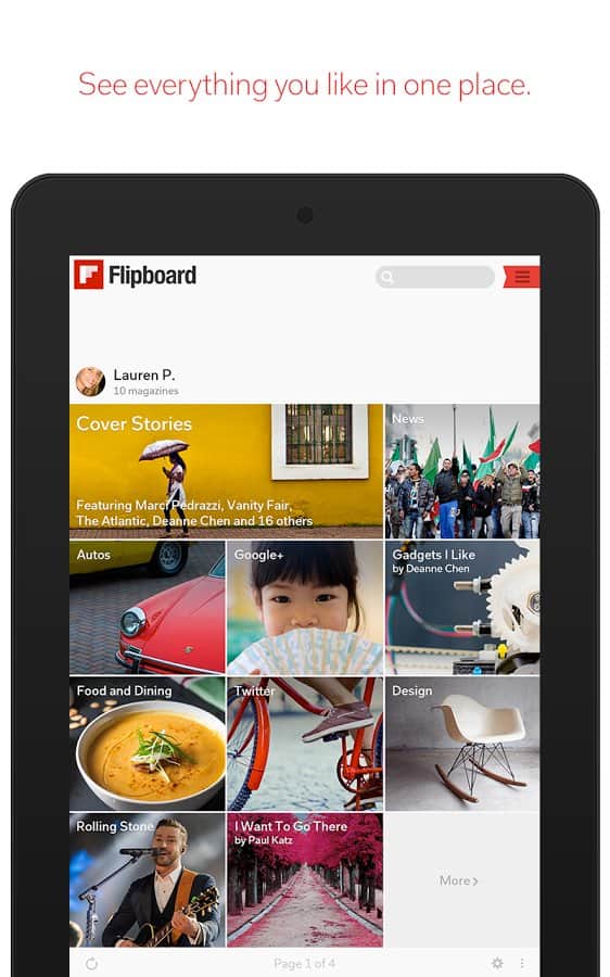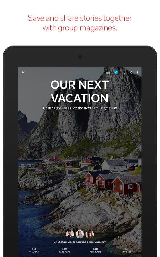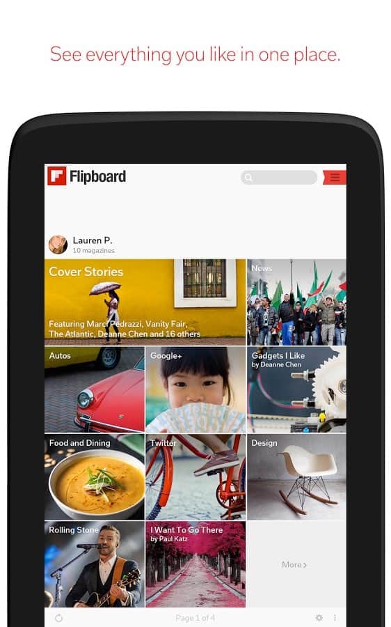 Flipboard – достаточно удобное приложение на вашем android устройстве. Flipboard создаст персональный журнал из всего того, чем делятся с вами в различных социальных сетях, отразит ленту Facebook или Twitter, фотографии с друзьями Instagram и многое, многое другое. А также позволит пролистывать ленты новостей из Google Reader, LinkedIn, Tumblr, Flickr, 500px, Sina Weibo и Renren на Flipboard. Вы можете использовать Instapaper или Read It Later, чтобы сохранять материалы для дальнейшего чтения. Качаем бесплатно и наслаждаемся. Удобно, круто и просто!