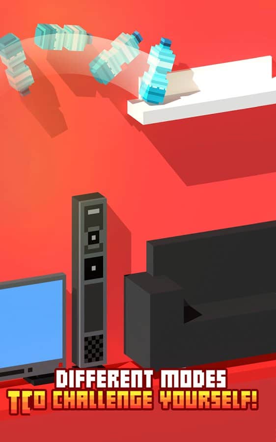 Flippy Bottle Extreme! – игра на андроид, где вы будете контролировать прыжки пластиковой бутылки. Нажимайте на экран своего телефона или планшета и вовремя отпускайте палец для того чтобы бутылка совершила прыжок. Прыгайте по различным объектам в комнате и старайтесь, чтобы бутылка приземлилась на донышко. Удерживайте палец на экране, чтобы полностью контролировать силу и дальность прыжка. Тренируйте свою ловкость и точно рассчитывайте полет бутылки, не допуская падений и перелетов. После удачно пройденного уровня вам будут открываться новые бутылки, которые имеют уникальный вид. Играйте со своими друзьями и показывайте лучший результат.