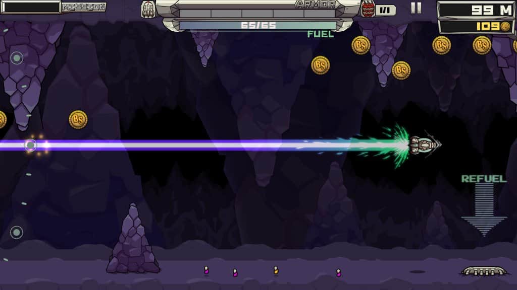 Flop Rocket - Надоели простые аркады, и вся эта казуальщина? Тогда самое время установить эту игру. Суть игры проста, одной рукой, вы управляете мощностью ракеты, второй - её направлением. Управление в игре очень сложное, а уровни на некоторых этапах просто невероятны. Вам придется рассчитывать ваши виражи до миллиметра, иначе вы разобьетесь. У вашей ракеты, будет определенное количество брони, а значит пару ударов о скалы, она выдержит. Но не спешите радоваться, ведь впереди вас ждут монстры, огромные и опасные, которых вам нужно будет уничтожить. Но не всё сразу, сначала вам придется улучшить свою ракету. Вы сможете увеличить броню, скорость и маневренность, и только тогда, вступать в смертельную схватку, с гравитацией.