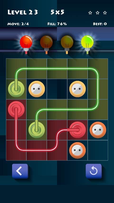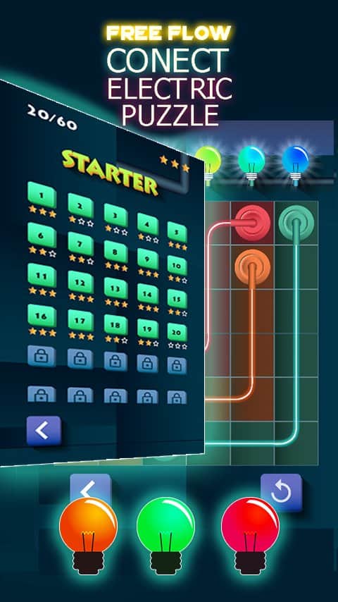 Flow Free: Connect Electric Puzzle – головоломка на андроид, где вашей задачей будете соединять между собой одинаковые по цвету розетки. В этой игре вы окажитесь на поле, разделенном на клеточки вам необходимо находить одинаковые по цвету розетки и соединять их между собой электрическим кабелем так чтобы пустить ток и зажечь лампочку. Сложность игры заключается в том, что провода ведущие от одной розетки до другой не должны пересекаться между собой. Пройдите все уровни игры и потренируйте свою логику и сообразительность. Игра порадует вас 2 игровыми режимами, приятной графикой и звуками.