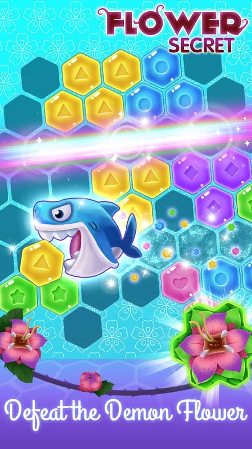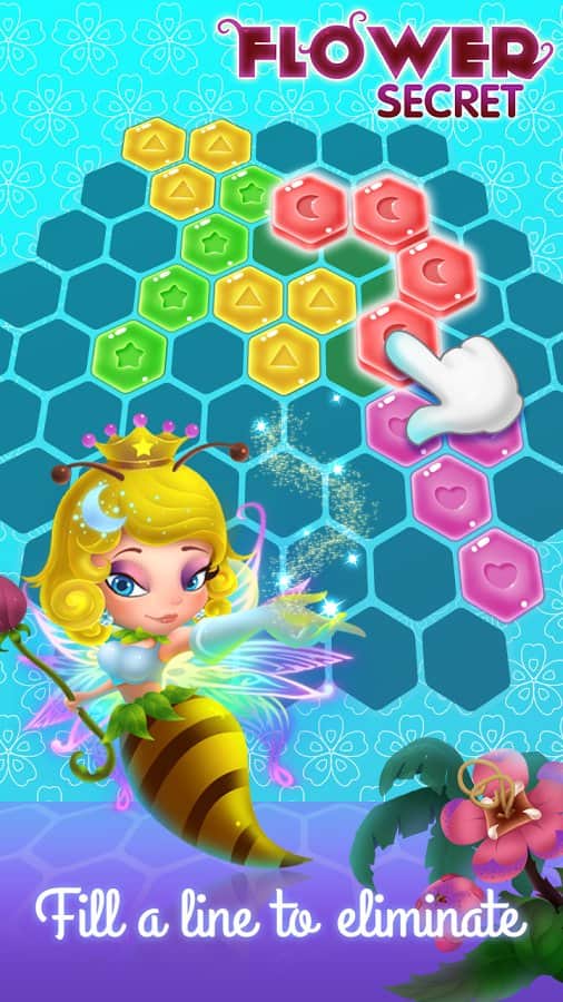 Flower Secret - Hexa block puzzle & Gems eliminate – увлекательная игра на андроид, где вы будете помогать пчелке заполнять соты. В этой гире вы отправитесь в увлекательное путешествие, где познакомитесь с разнообразными героями и приложите все свои логические и умственные способности, чтобы пройти уровень. Размещайте на игровом поле, состоящем из шестиугольников, разнообразные фигуры и старайтесь сделать так, чтобы фигуры заполнили полностью ряд и тогда он исчезнет, а вы получите дополнительные очки. Тренируйте свою сообразительность и расставляйте фигуры в нужных местах. В игре представлено более 300 уровней, множество бонусов и усилений.