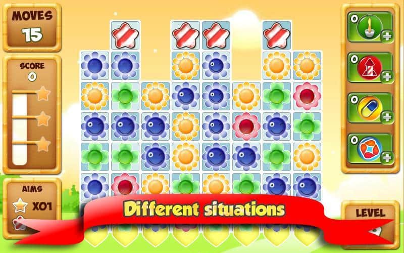 Цветочная история - Замечательная игра по типу «три в ряд» на андроид. Вы переместитесь в красивый мир с разноцветными цветами. Собирайте цепочки по три в ряд одного цвета за определенное количество ходов. Чем больше комбинаций вы сделаете, тем больше звезд вы получите в конце игры. Сможете ли вы пройти все уровни на три звезды?