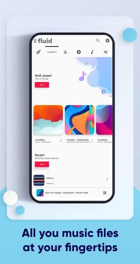 Слушайте любимые хиты в бесплатном музыкальном многофункциональном плеере Fluid: Mp3 music player with floating widget и оцените его преимущества.