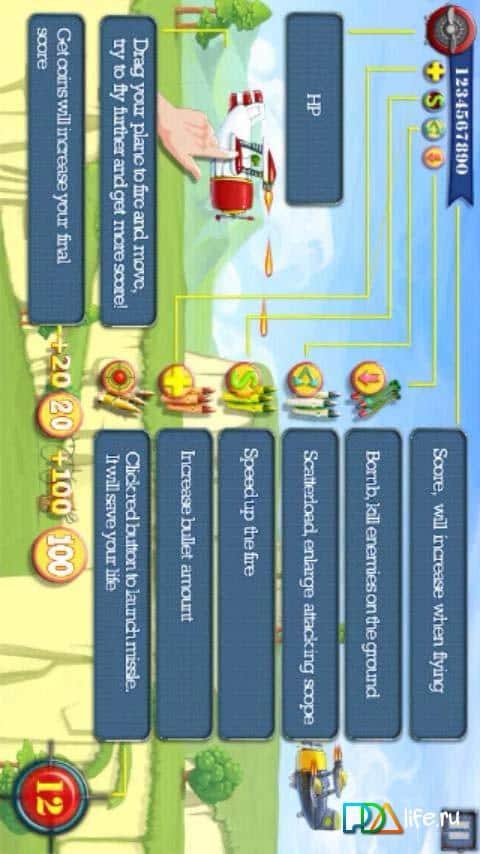 Fly Boy - игра на андроид, в которой вам необходимо защитить свой самолет от вражеского огня. Летайте над землей и стреляйте во врагов с помощью своей пушки, а также применяйте 6 различных улучшений: включая бомбы, ускоритель для пуль, увеличитель области обстрела и увеличитель количества пуль. Собирайте по пути бонусы и улучшайте свой самолет, приобретая для него всевозможные улучшения.