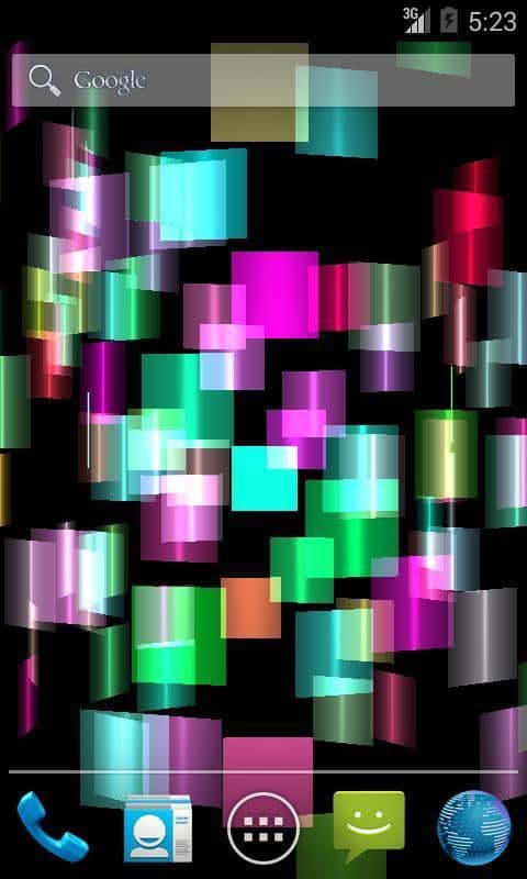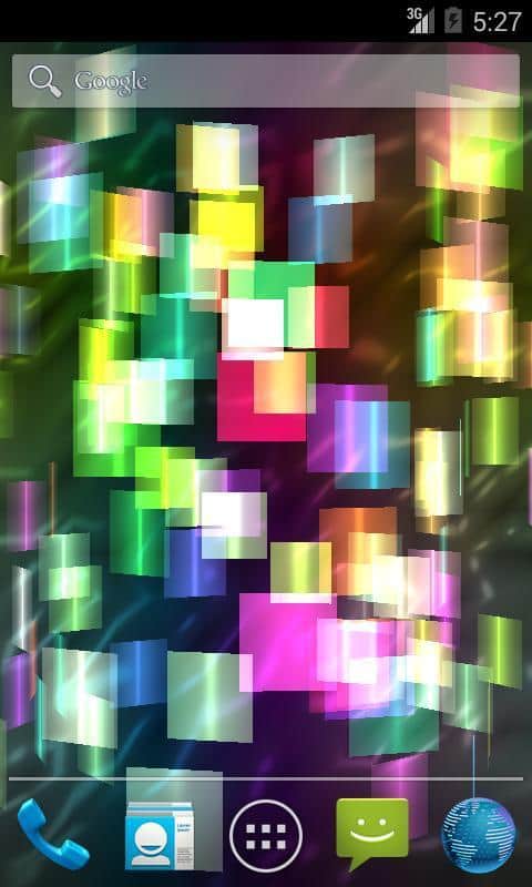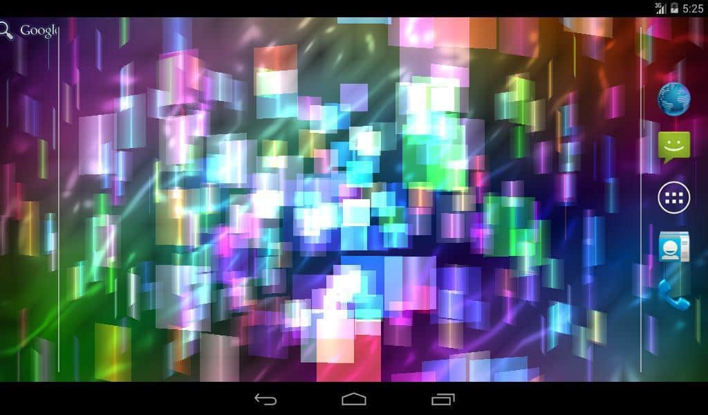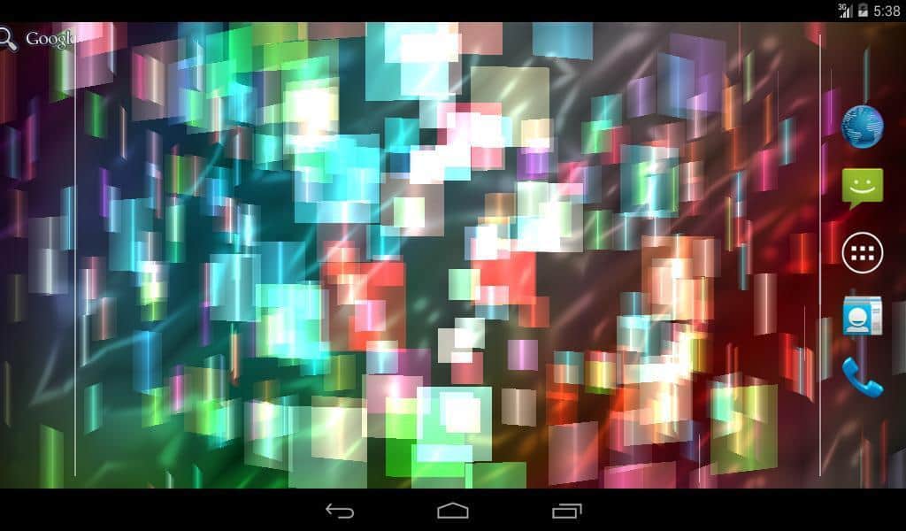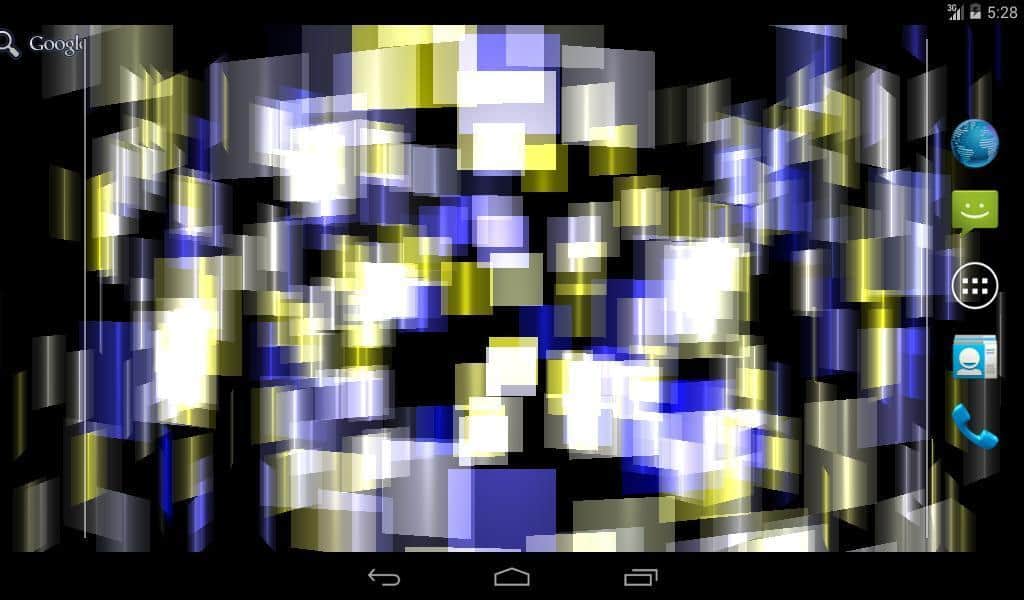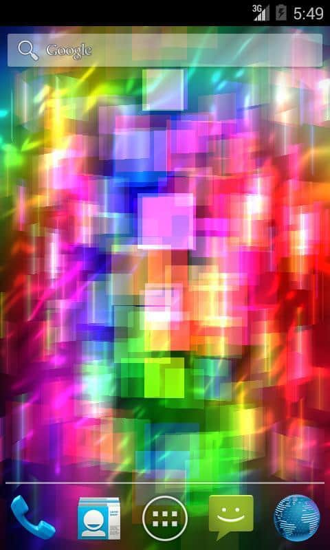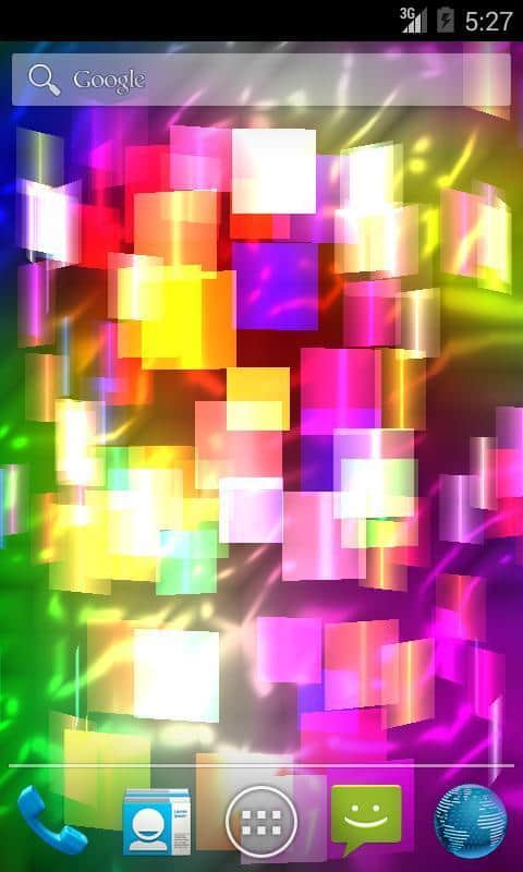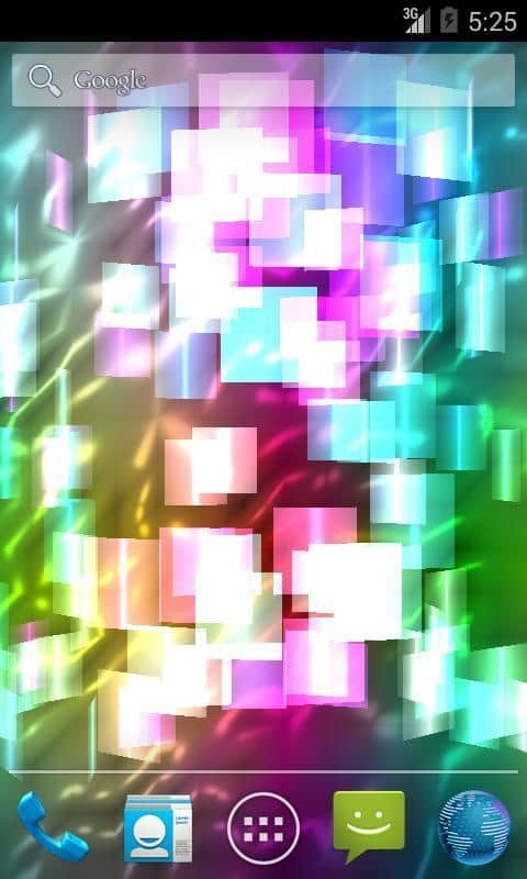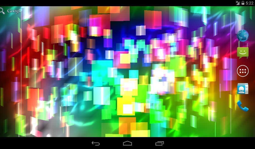 Fly Color Pro Live Wallpaper - абстрактные живые обои, которые представляют собой своего рода трёхмерную мозаику, состоящую из ярко окрашенных и мерцающих объектов. Все элементы обоев меняются в цветовой гамме и вращаются в разных плоскостях, создавая при этом трёх мерную мозаику которая вращается и изменяется. При прикосновении к экрану картинка реагирует и начинает интенсивнее играть цветами и вращаться.
