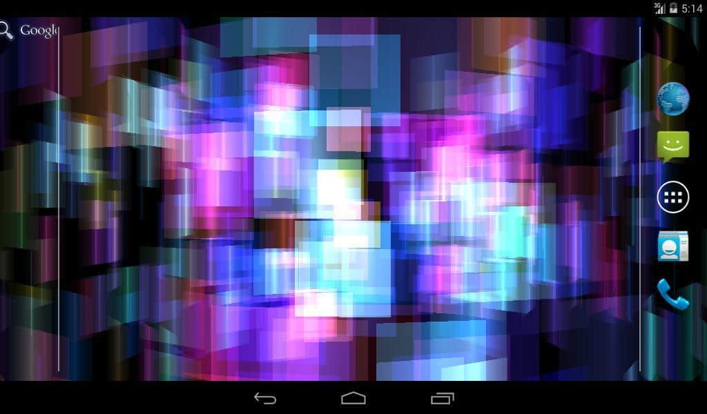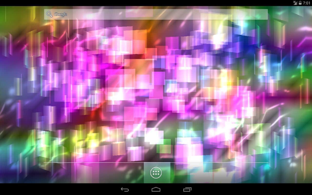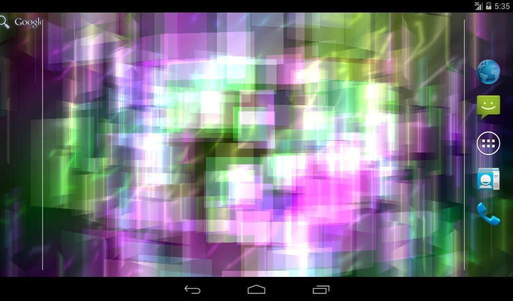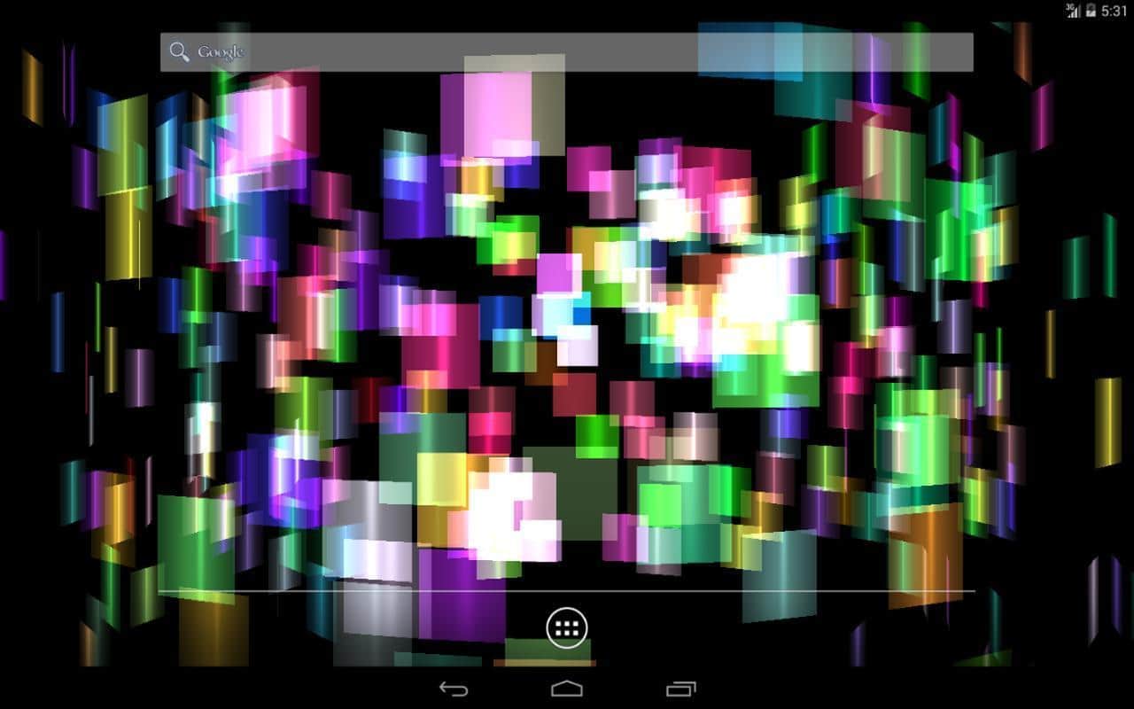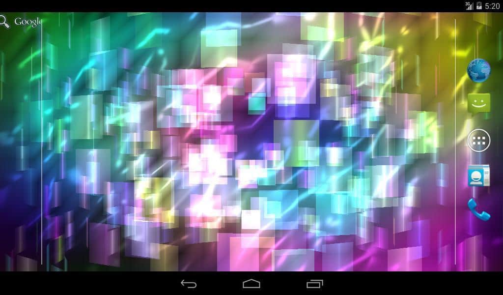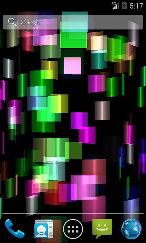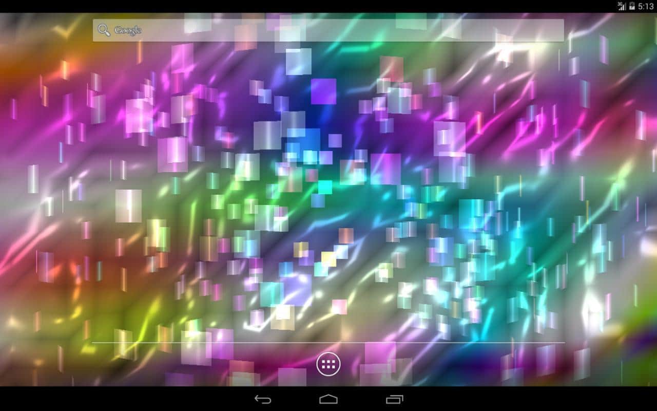 Fly Color Pro Live Wallpaper - абстрактные живые обои, которые представляют собой своего рода трёхмерную мозаику, состоящую из ярко окрашенных и мерцающих объектов. Все элементы обоев меняются в цветовой гамме и вращаются в разных плоскостях, создавая при этом трёх мерную мозаику которая вращается и изменяется. При прикосновении к экрану картинка реагирует и начинает интенсивнее играть цветами и вращаться.