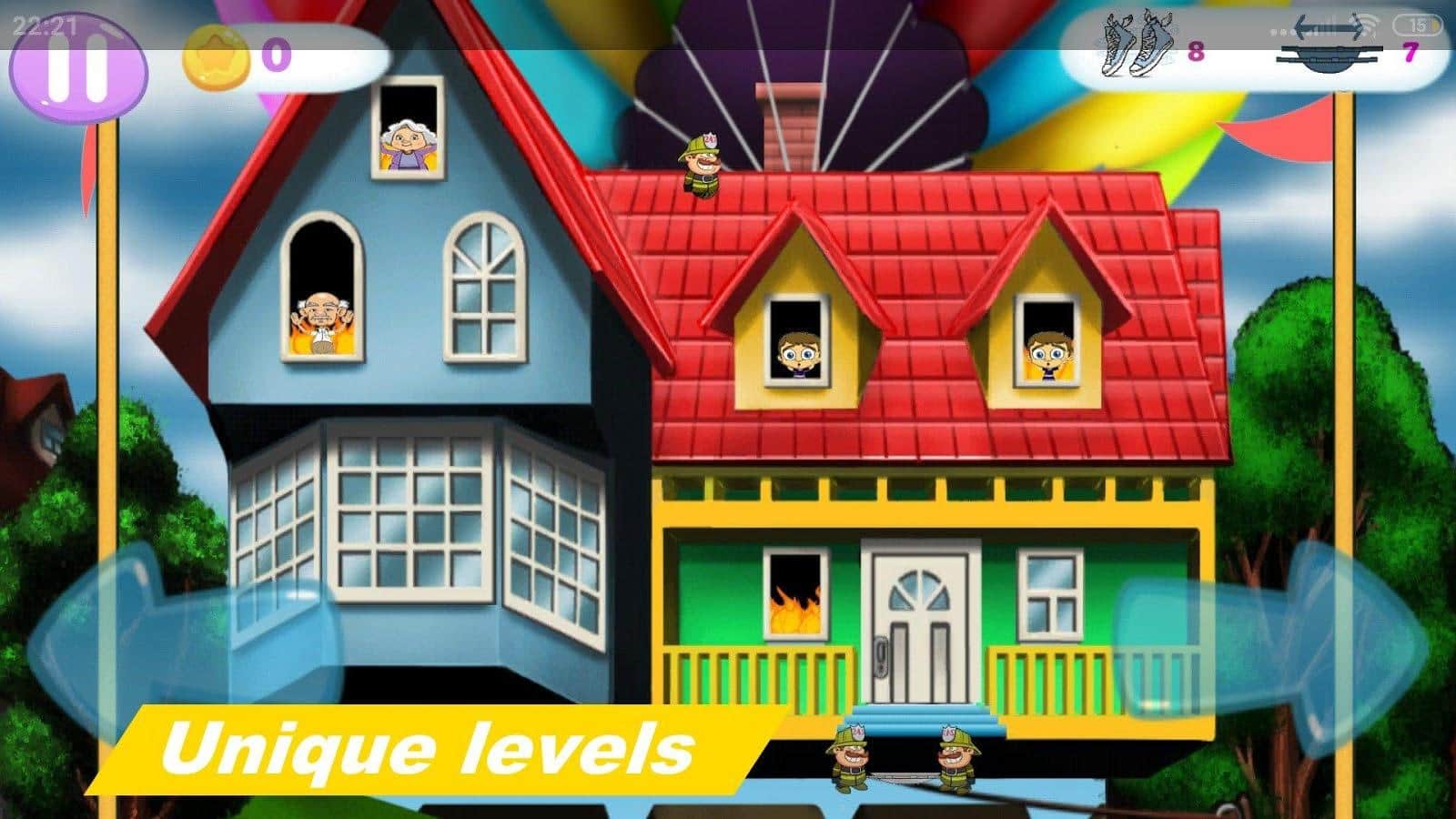 Flying firefighters – веселая игра на андрроид, где вы будете управлять пожарным который должен спасать людей из пылающих огнем зданий. В этой игре вашей главной задачей будет запускать пожарного в полет и тушить таким образом пожар и помогать людям выбраться из зданий. Перемещайтесь по многочисленным красочным локациям каждая из которых порадует вас различными погодными условиями и преградами. Управляйте полетом пожарного с помощью двух стрелок на экране и проходите сложные уровни. Эта игра отлично подойдет как для взрослых, так и для детей, каждый найдет в ней что-то для себя. Играйте в эту игру и учитывайте законы физики.