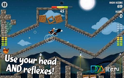Flying Fox - Веселая аркада на android, где вам предстоит летать играть летающей, как вертолет, лисой. Лисица пытается ограбить местную ферму и поймать кур. В игре есть признаки головоломки, ведь вам придётся догадаться, как выманить кур к вам. Вас ждет уникальный геймплей и невероятные, головоломные уровни.