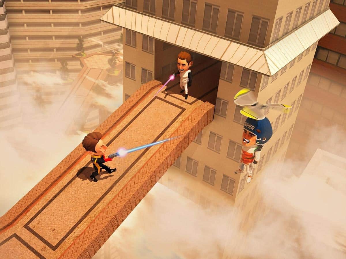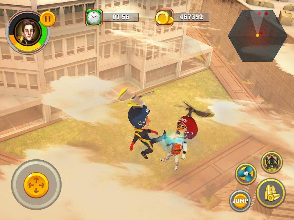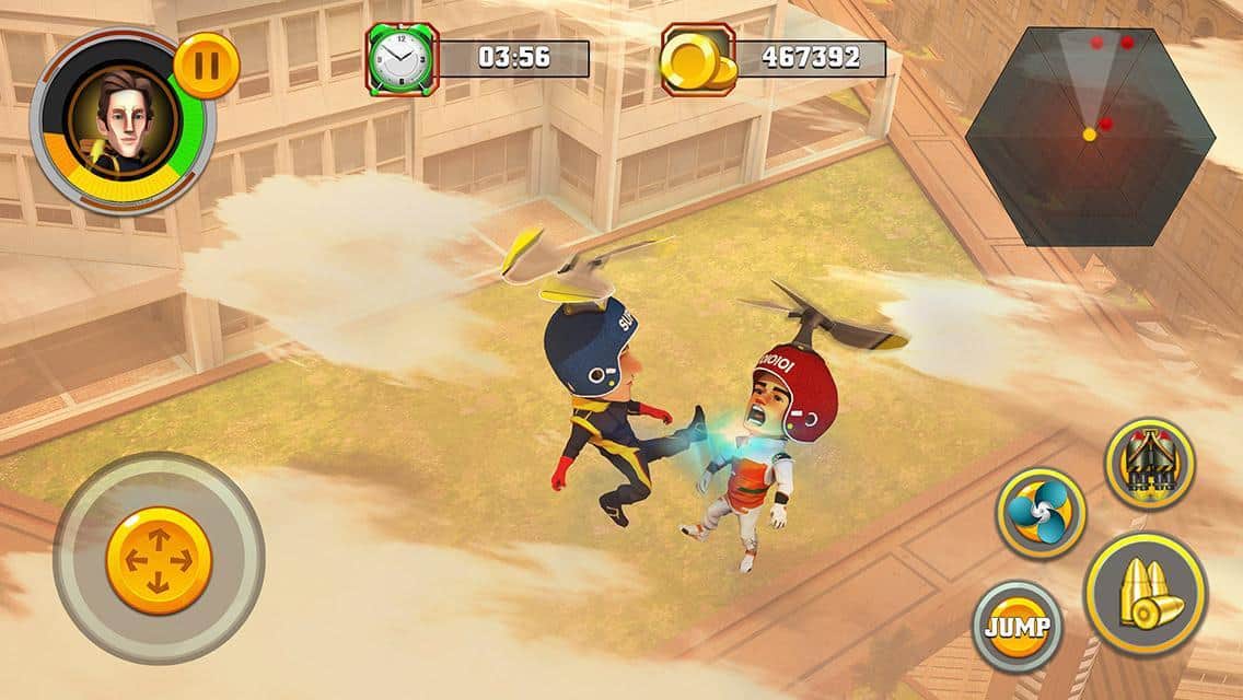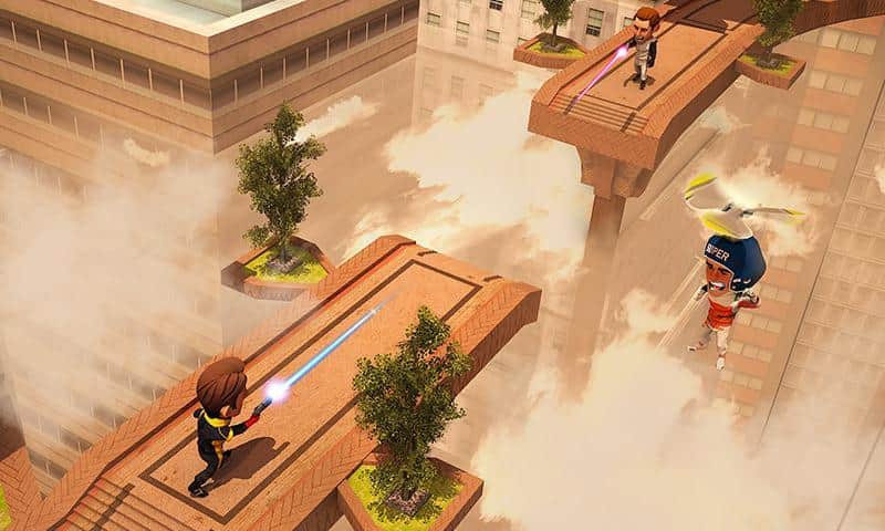 Flying Hero Escape 3D - отличная экшен аркада с трехмерной графикой. События игры разворачиваются вокруг молодой пары влюбленных, оказавшихся в сложной ситуации, девушка была похищена бандой контролирующей город. Стоит отметить что место действия не совсем обычное, это парящий в облаках футуристический город. В свою очередь наш главный герой обладает набором довольно полезных, для данных условий, девайсов, это реактивный ранец, позволяющий перемещаться во всех плоскостях и конечно же самый современный лазер, способный испепелить противника. Игровая механика в свою очередь достаточно проста, бегайте, прыгайте, летайте, собирайте призы, уничтожайте злодеев, все это лишь для достижения конечной цели, вырвать из лап бандитов свою суженную.