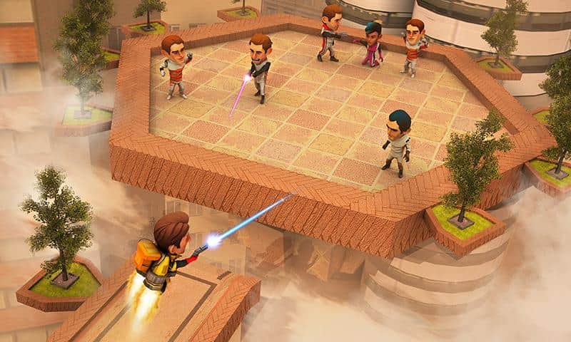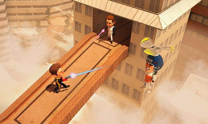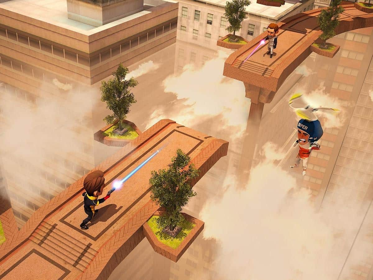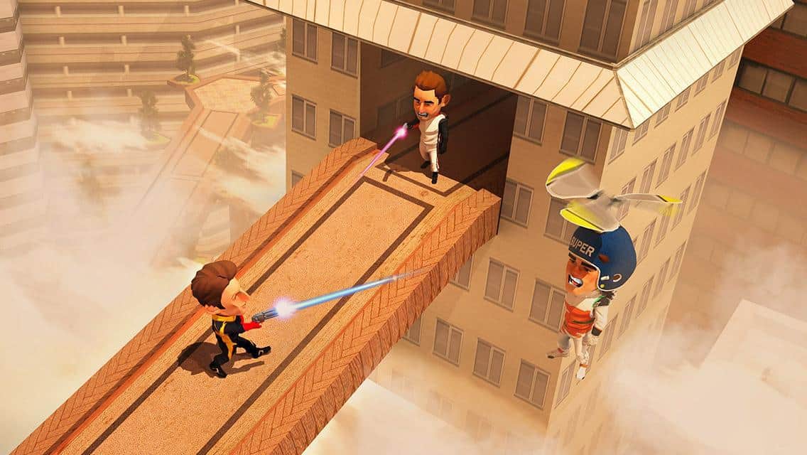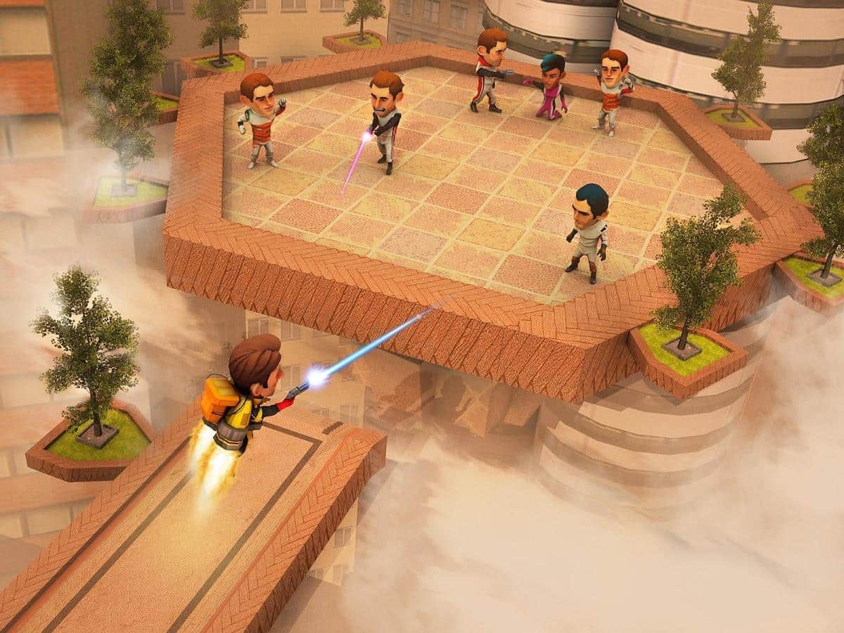 Flying Hero Escape 3D - отличная экшен аркада с трехмерной графикой. События игры разворачиваются вокруг молодой пары влюбленных, оказавшихся в сложной ситуации, девушка была похищена бандой контролирующей город. Стоит отметить что место действия не совсем обычное, это парящий в облаках футуристический город. В свою очередь наш главный герой обладает набором довольно полезных, для данных условий, девайсов, это реактивный ранец, позволяющий перемещаться во всех плоскостях и конечно же самый современный лазер, способный испепелить противника. Игровая механика в свою очередь достаточно проста, бегайте, прыгайте, летайте, собирайте призы, уничтожайте злодеев, все это лишь для достижения конечной цели, вырвать из лап бандитов свою суженную.