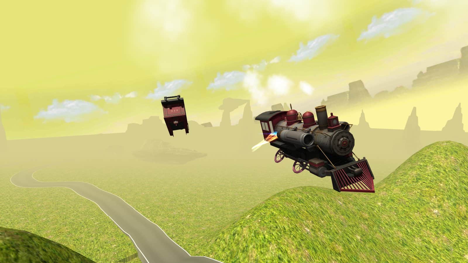Flying Train Simulator 3D Free - Все мы видели кучу симуляторов где нужно было летать на самолетах. Мы даже видели игры где летали автомобили, однако эта игра превзошла всё это. Мечтали ли вы когда либо о летающем локомотиве? Так вот получайте, настоящий поезд, с вагонами, а так же с небольшим апгрейдом в виде турбо ускорителя. Кто-то сейчас подумал какой смысл? В этой игре нет миссий, уникальных заданий да и карты пока всего две. Однако кому нужен сюжет, когда в игре довольно приятная графика а так же летающий локомотив! Эта игра отлично подойдет что бы немного развлечься, и попытаться не разбиться о скалу.
