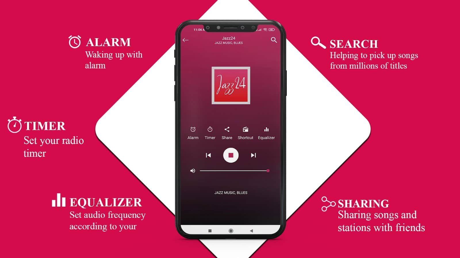 FM Radio: Local Radio Stations - Радио является одним из массовых способов получения полезной информации, поэтому всего в нем есть несколько направлений: спортивное радио, новостное, музыкальное, ток-радио, комедийное и прочее. FM-радио включает в себе множество удобных функций: навигация между странами и городами, эквалайзер, будильник, таймер сна, избранное, недавний список прослушиваний, поиск современной музыки, управление громкостью прямо на экране, добавление ярлыка любимых радиостанций на главный экран собственного телефона.