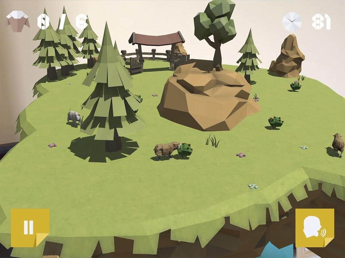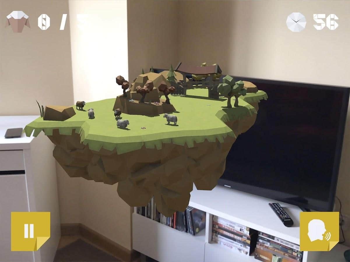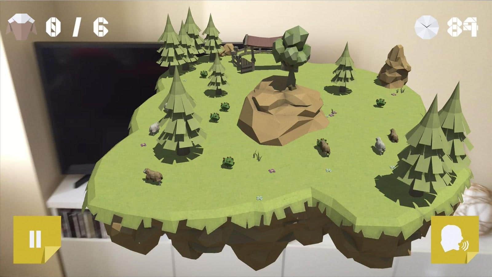 Fold the Flock – веселая игра на андроид, где вы перенесетесь в дополнительную реальность. В этой игре вы будете выступать в роли пастуха, который перемещается по парящему остову и его главной задачей собрать всех овец и загнать их в загон. Передвигайтесь по острову и кричите овец чтобы завести их в загон. Опасайтесь кустов и других преград у себя на пути, а также не забывайте собрать все ключи. Играйте в эту игру в любое свободное время и разглядывайте парящий остров, который будет находиться перед вами. Игра выполнена в стиле оригами и порадует вас отличной музыкой. Lля работы приложения необходима поcледняя версия ARCore.