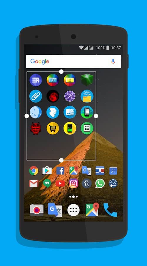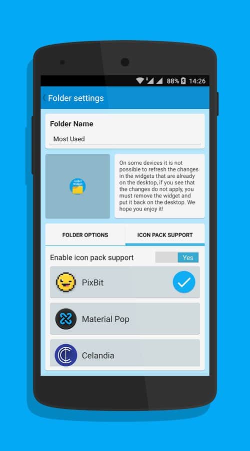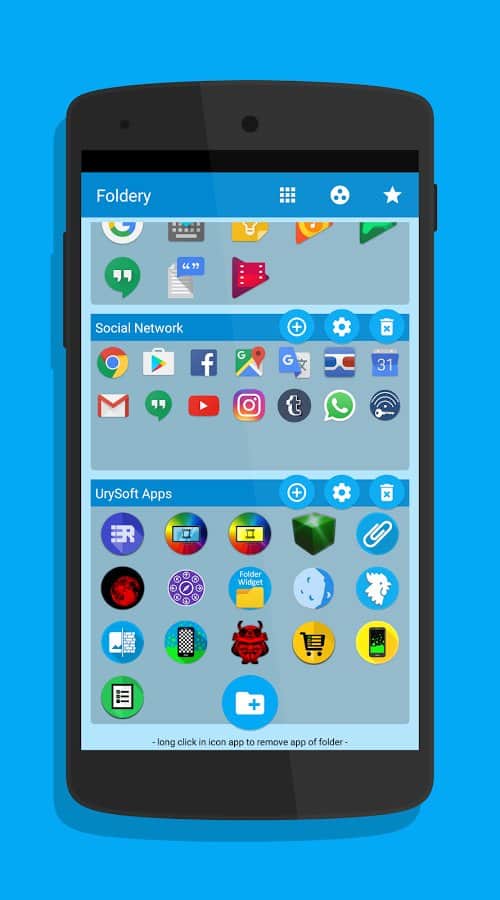 Foldery Multicon Folder Widget - Искать нужные себе виджеты это уже устарелая тема, теперь вы можете создавать их сами, редактировать как вам нужно и даже добавлять некоторые визуальные элементы. Это приложение идеально для тех кто любит заполнять свой рабочий до самых краёв. Создавать виджеты очень просто, всего то нужно выбрать их начальную форму, а потом можно изменять её просто растягивая или сжимая. Так же есть множество различных тонких настроек, с помощью которых вы сможете создать на самом деле уникальный виджет.