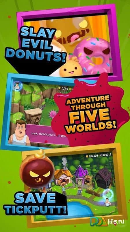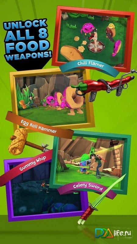 Food Battle: The Game - участвуйте в эпических сражениях еды. Продовольственная битва ждёт вас, разгадывайте сладкие головоломки и уничтожайте смертоносную выпечку. Даже безобидная печенька, может оказаться, смертоносным врагом. Проходите различные миры, и тонны сумасшедших уровней и победите армию злого розового пончика. Хорошая графика, интересная задумка и увлекательный геймплей, заставят вас надолго погрузится в мир сладких баталий.