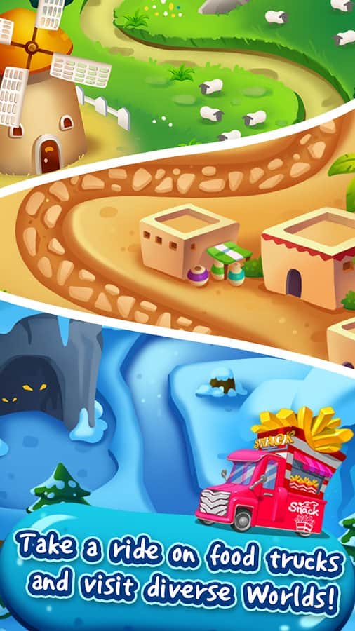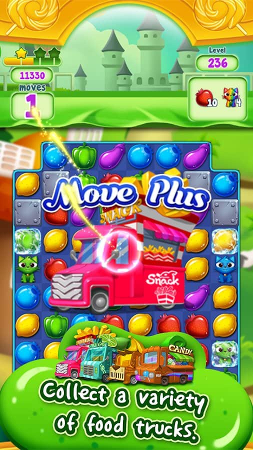 Food Burst – увлекательная игра из жанра три в ряд на андроид, где вы будете путешествовать по сладкому миру, состоящему из фруктовых конфет. Составляйте ряды из трех и более конфет одного цвета и взрывайте их наслаждаясь красочными спец эффектами и получая очки. Каждый новый уровень порадует вас новыми разноцветными конфетами, которые вам необходимо сортировать и ехать на своем грузовичке на следующий уровень. Старайтесь сформировать ряды из максимального количество одинаковых конфет и запустить цепную реакцию взрывов. Применяйте на практике различные усиления и бонусы и быстрее проходите уровни.