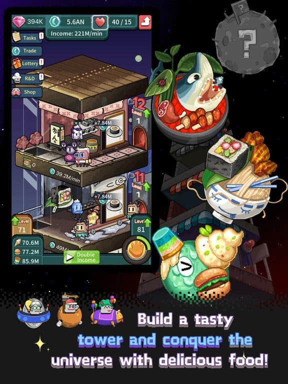 Foodie Tower: Idle Shop Tycoon – занимательная игра где вы будете создавать свою собственную вкусную башню. В игре вы будете создавать свои продукты и продавать их в магазинах тем самым получая прибыль и успех. Вашей главной задачей будет создавать вкусные продукты питания и покорять ими весь мир. Нанимайте команду менеджеров которые будут помогать вам в этом нелегком деле. Каждый тип продукта потребует от вас определенной системы исследований и разработок, которые бросят вызов вашему кулинарному мастерству. Расширяйте свою вкусовую башню и пробуйте все новые вкусные блюда.