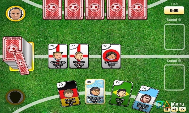 Football Card - карточная игра на андроид, в которой вы будете играть в настоящий футбол реальными игроками. Разрабатывайте свою стратегию и соберите самые лучшие карты для победы над врагом. А играть вам предстоит с ИИ и чтобы его победить вам потребуется хорошо знать правила игры где вы сможете забивать пенальти или играть сразу двумя игроками, а также проделывать различные трюки чтобы обхитрить соперника и выбить у него победу.