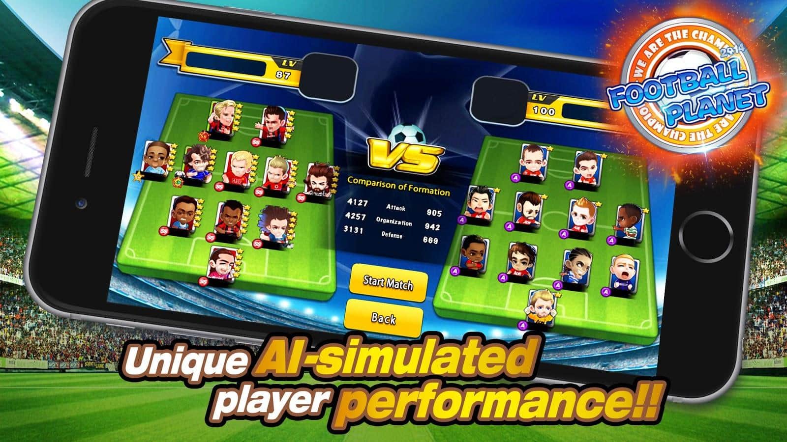 Football Planet – спортивная игра на андроид, где вы возьмете под свой контроль футбольный клуб и приведете его к победе в чемпионате мира. Начните свой карьерный рост, участвуя в различных чемпионатах и турнирах, побеждая одну команду за другой. Создайте непобедимую команду, покупая и продавая карточки с футболистами, добиваясь наилучших результатов. Каждый футболист имеет свои уникальные способности и уровень подготовки. Выпускайте своих футболистов на поле и наблюдайте за тем, как они играют и приносят вам славу и деньги. Разрабатывайте свою стратегию тренировок и матчей, выигрывая чемпионаты и повышая рейтинг своей команды.