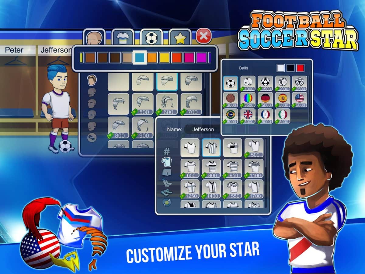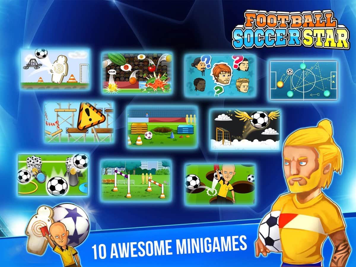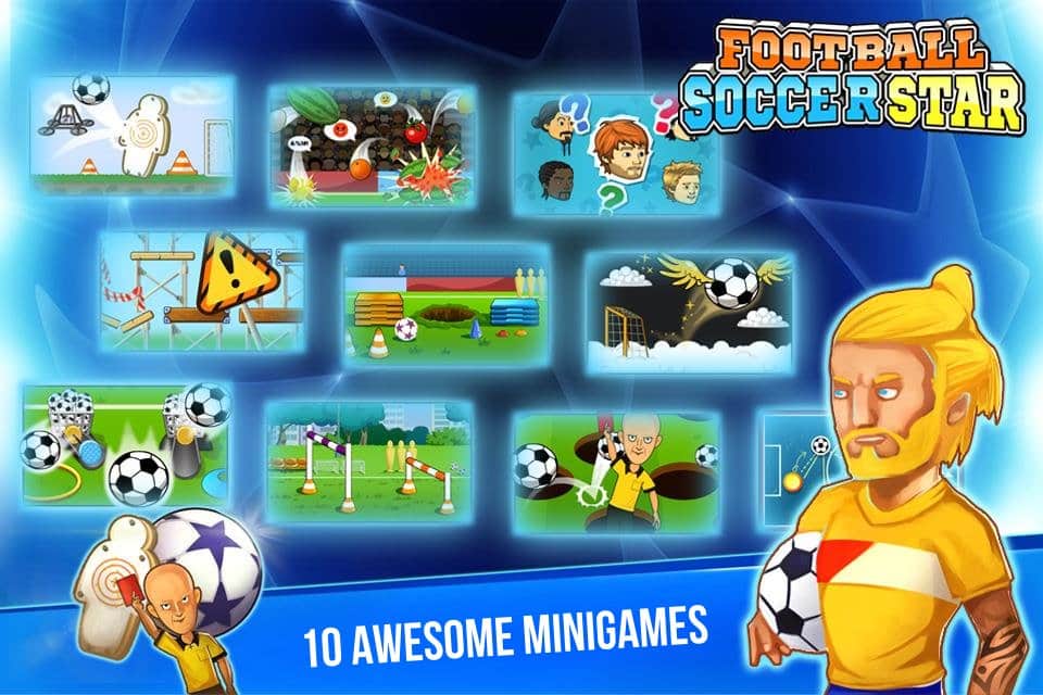 Football Soccer Star! – спортивная игра на андроид, где вы будете проверять своего футболиста на меткость, проделывая различные трюки. Выбирайте себе футболиста, подбирая для него форму и меняя его внешний вид. В этой игре вас ждут 10 увлекательных мини-игр, которые на деле проверять вашу меткость, силу и сноровку. Выполняйте точные удары по воротам, обходя все препятствия и получая за это деньги. Прыгайте через препятствия и ни в коем случае не оступитесь. На заработанные деньги вы сможет полностью поменять внешний вид своего футболиста, добавив ему усы и бороду. Попробуйте заполучить более 30 достижений, 12 трофеев и заработать себе славу лучшего игрока в футбол.