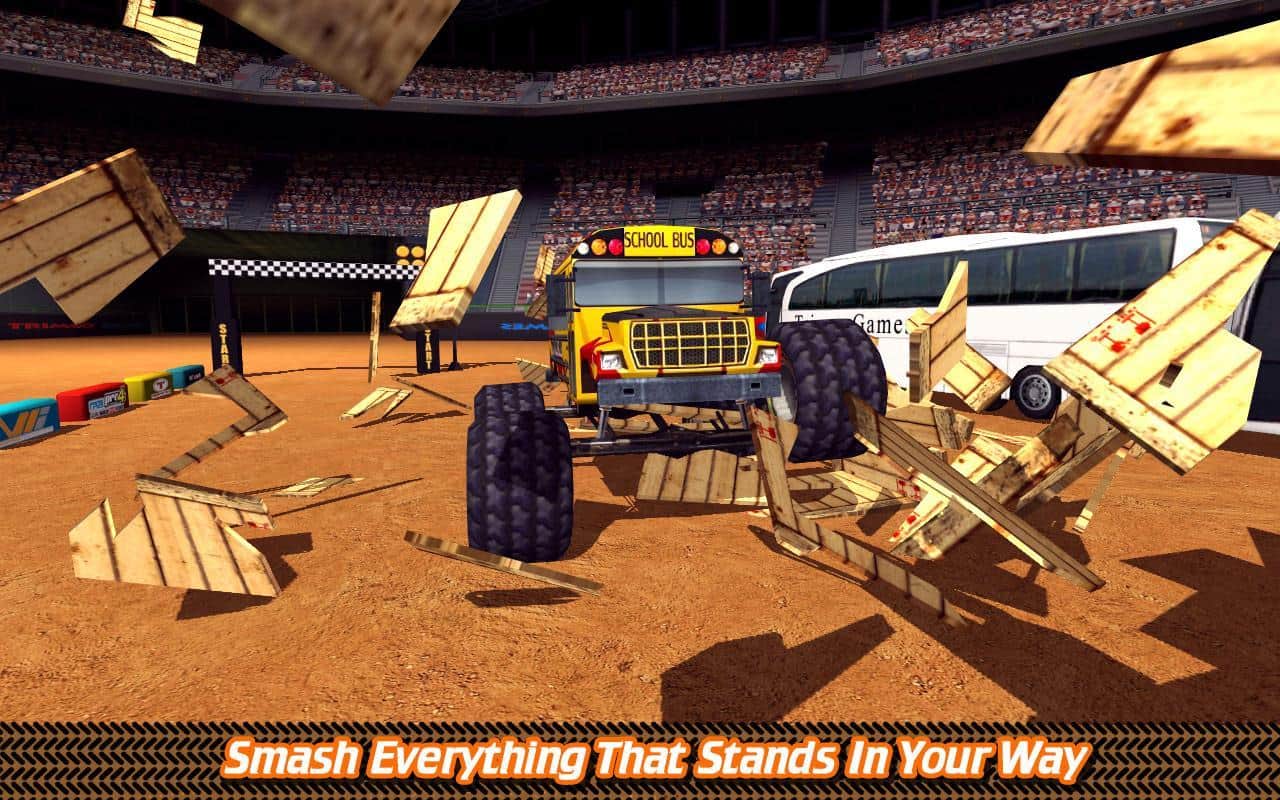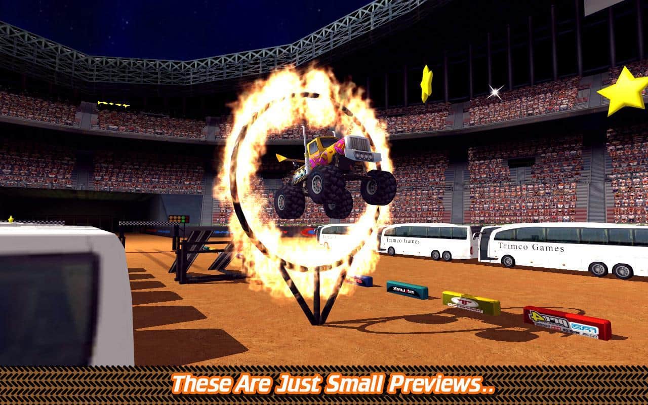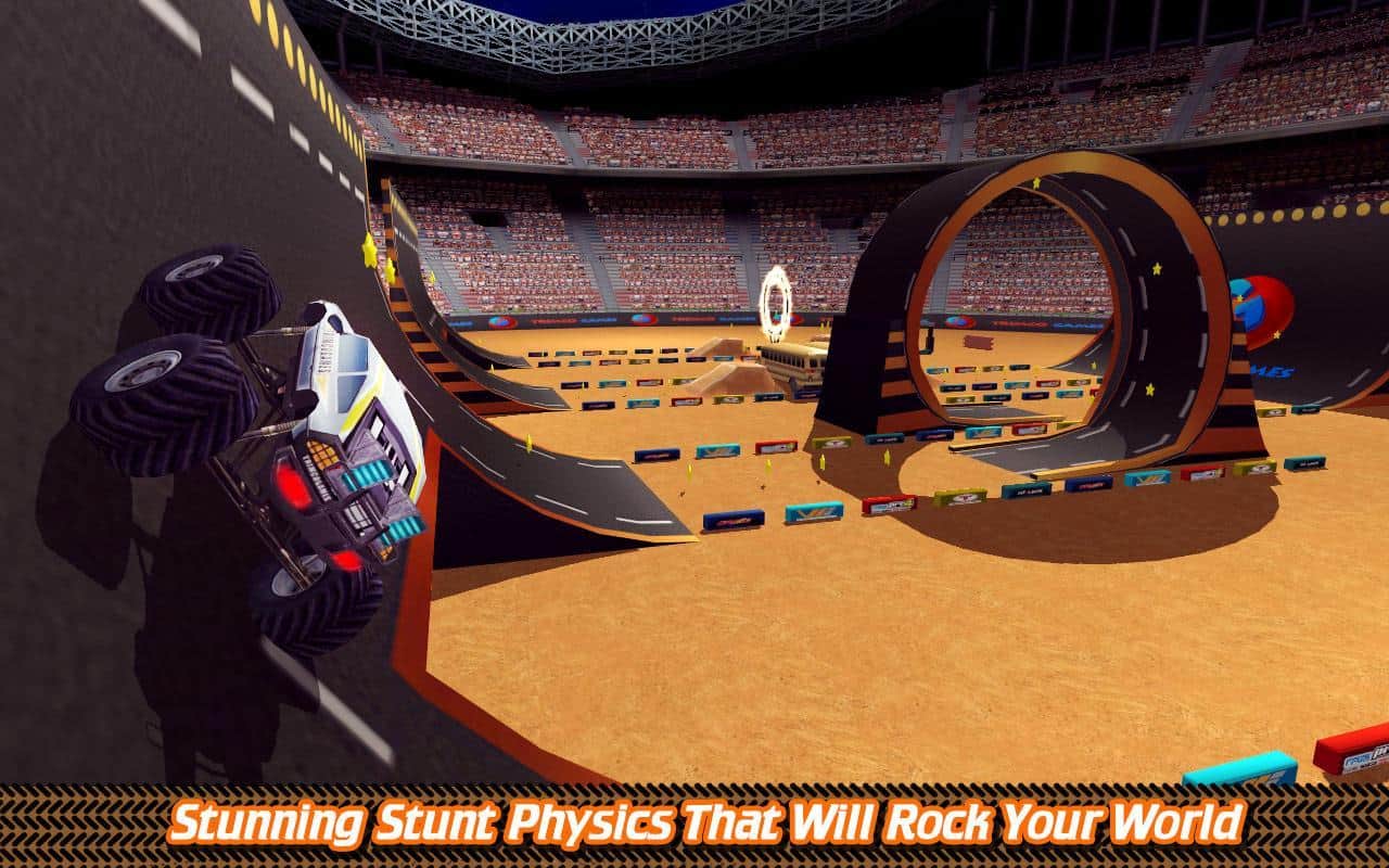 Football Stadium Truck Battle – игра с отличной физикой где вы возьмете под свой контроль огромный грузовик. В этой игре вы будете кататься по огромному футбольному полю и преодолевать все препятствия на своем пути. Проделывайте невероятные трюки пролетая через школьные автобусы, стоящие в ряд, используя для этого трамплин, а также проезжая через горящие кольца и петли. По пути собирайте все звездочки и бонусы и улучшайте свой грузовик после каждого заезда. Старайтесь не разбить свой грузовик, столкнувшись с препятствиями, а если так случилось, то приобретайте новый на заработанные деньги. Игра порадует вас удобным управлением, более 40 уровнями и многочисленными машинами.