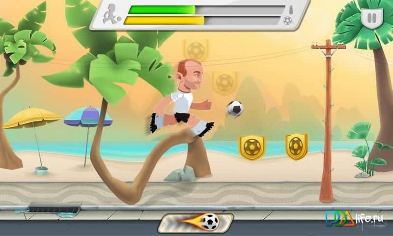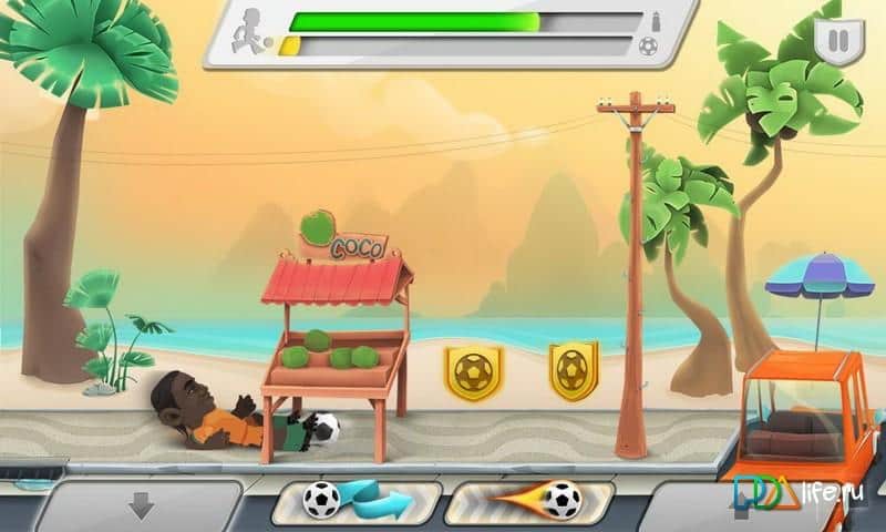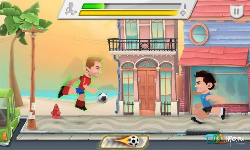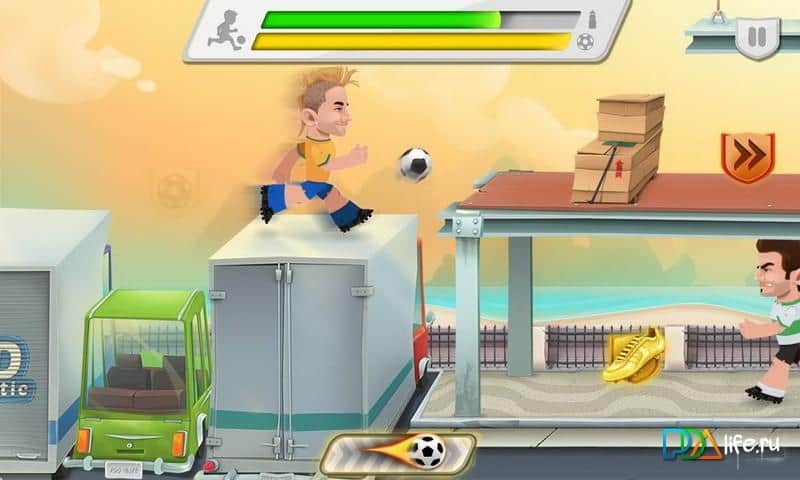 Football Stars World Cup - раннер на андроид, на тему футбола посещенному чемпионату мира в Бразилии. Выбирайте себе именитого игрока из большого списка мировых футболистов и бегайте по городским улицам преодолевая препятствия и ведя мяч вперед, не смотря не на что. По пути собирайте жетоны и монетки которые помогут вам заполучить супер удар который поможет вам обходить соперников из других команд.