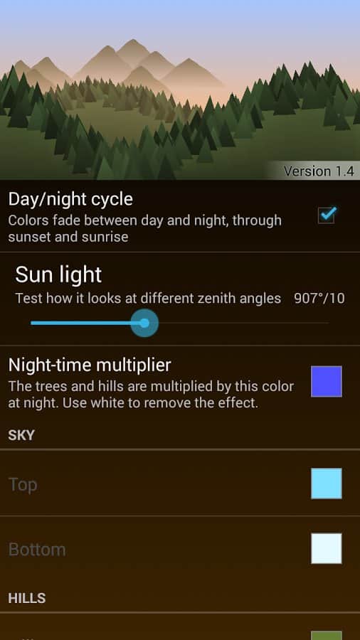 Forest Live Wallpaper - Простые и очень красивые обои для вашего рабочего стола. Они чем то напоминают мультяшный стиль и при этом выглядят весьма красиво. К тому же вы сможете настроить погоду а так же время на вашем экране.