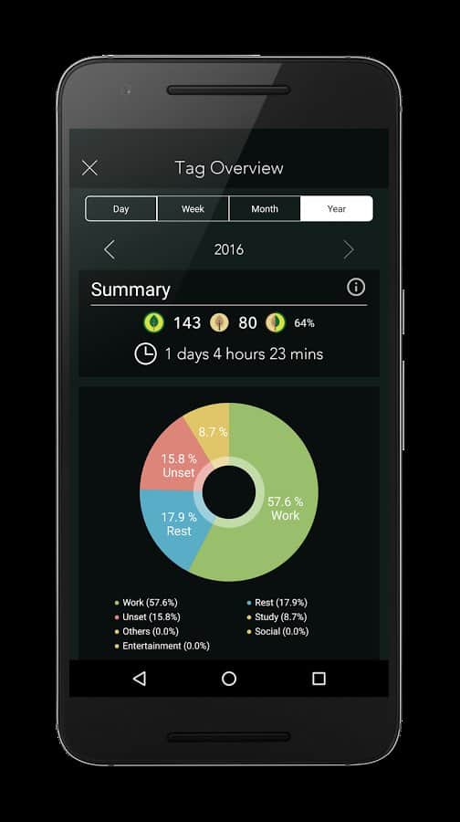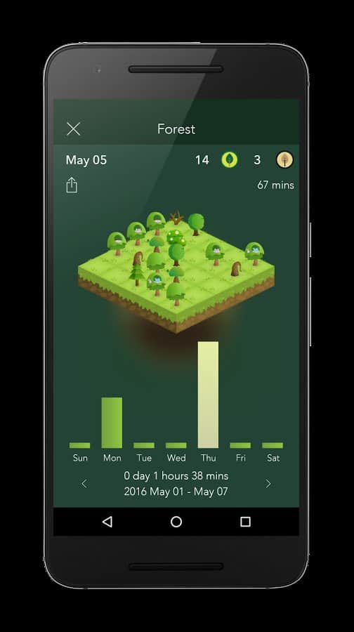 Никогда не задумывались, сколько времени у вас забирает бесполезное копание в телефоне? Проконтролировать этот процесс вам поможет данное забавное приложение: пока смартфон находится в режиме ожидания, на его экране будет вырастать симпатичное дерево, а разблокировав телефон раньше установленного срока вы просто убиваете несчастное растение :( Печальная история? То-то же. Работайте не отвлекаясь и на месте одного росточка сможете вырастить целый лес. Берегите природу, хотя бы виртуальную, а главное, берегите собственное время.