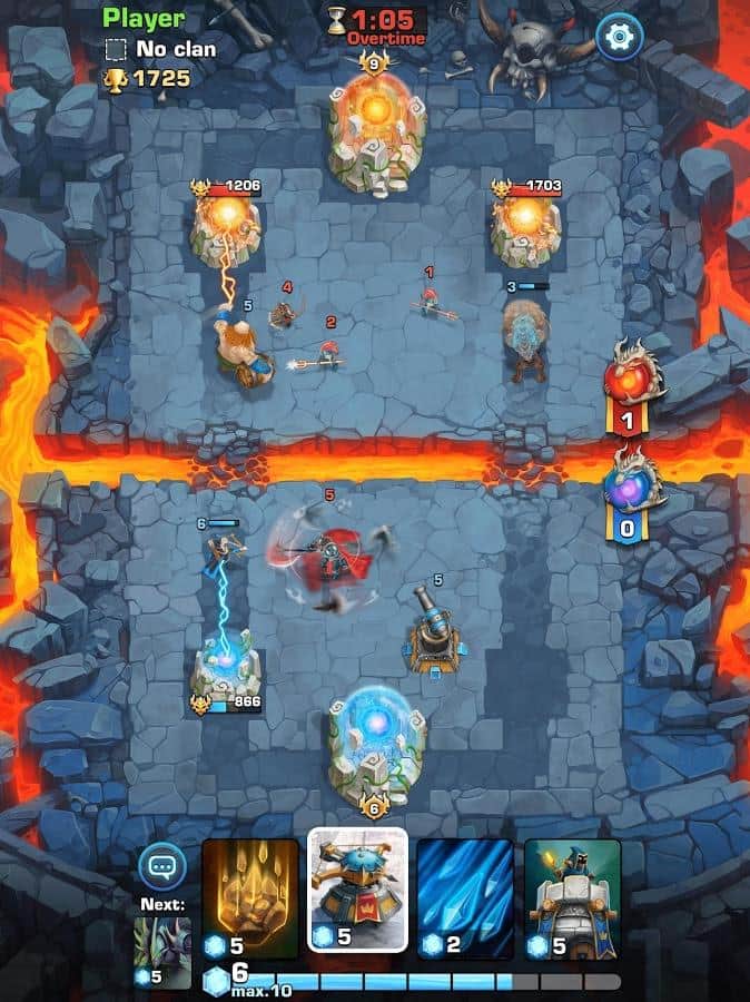 Forge of Legends – карточная игра на андроид, где вашей задачей будет уничтожить базу противника. Соберите свою непобедимую коллекцию героев, каждый из которых будет обладать уникальными навыками и способностями. Проведите своих воинов через многочисленные локации игры и вступите в бой с сильными врагами. Для победы над опытными врагами вам необходимо будет уничтожить их базу. Соберите свою колоду карт и нажимайте на карту, чтобы использовать силу героя. Постоянно следите за маной которая необходима вам для использования в бою тех или иных карт. Улучшайте свои карты и приобретайте новые, чтобы увеличить вероятность своей победы. Создавайте свои кланы с другими игроками и друзьями и сражайтесь не арене.