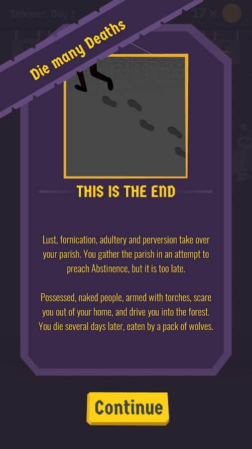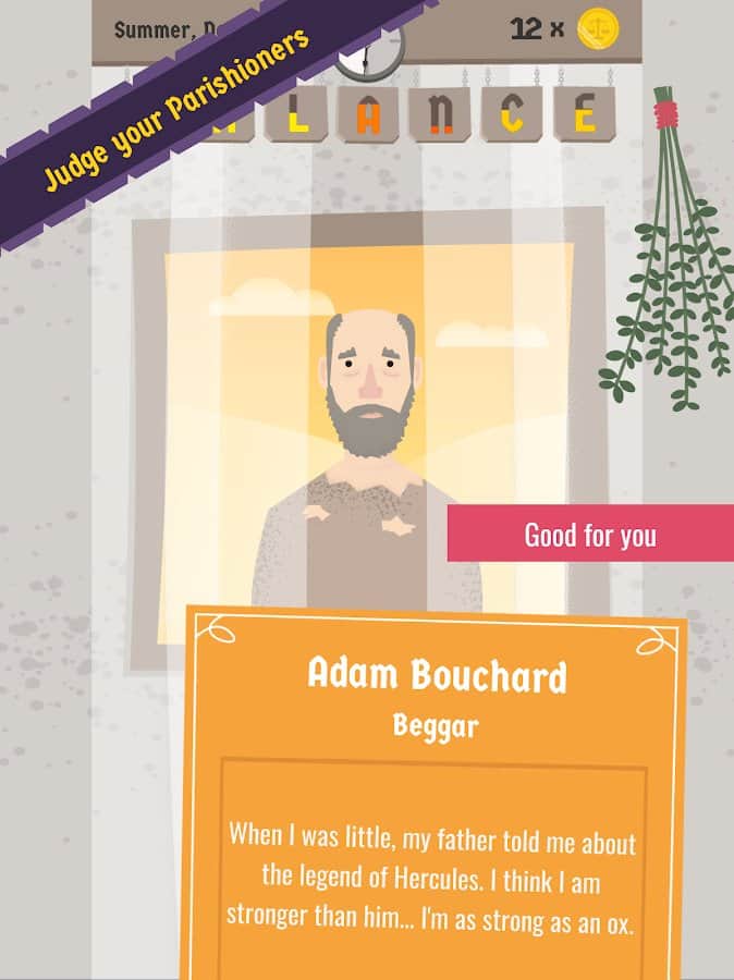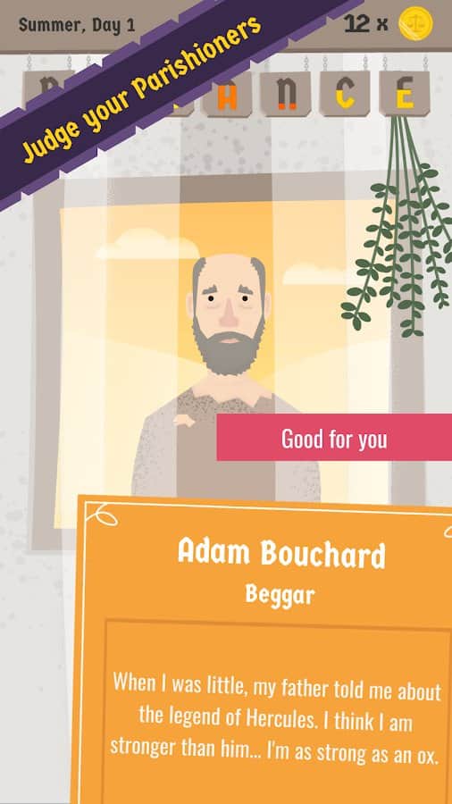 Forgive Me, Father... - карточная стратегия с элементами ролевой игры в основу которой легла популярная игровая механика. И так, вам предстоит выступить в роли священника который руководит приходом и как следствие проводит отпущение грехов. Это и будет вашей основной задачей, при этом вам предстоит решать какие грехи отпускать, а какие нет, а так же каким образом воспользоваться полученной информацией, от этого и будет зависеть как долго вы сможете занимать свой пост.