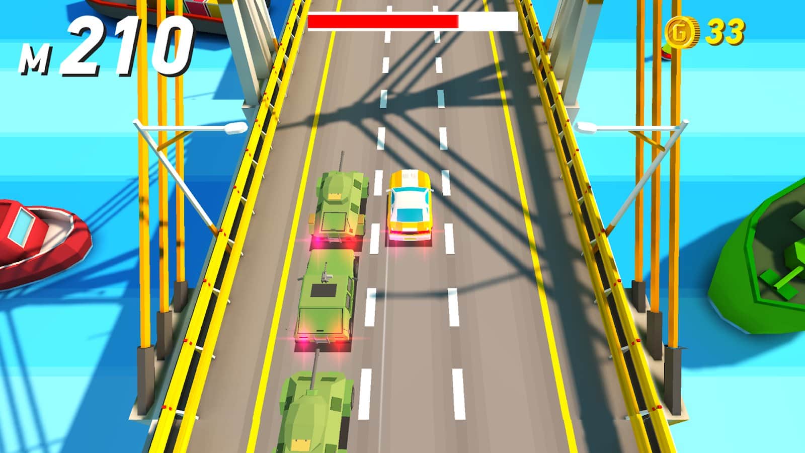 Forsage: Car Chase Simulator – аркадные гонки на андроид, где вы будете ездить по трассе и сталкивать другими машины. В этой игре вашей главной задачей будет уйти от преследования полиции и продержаться как можно дольше в игре. Перемещайте свой автомобиль из стороны в сторону и сбивайте с трассы полицейские машины и врагов. Не забывайте по пути собирать бонусы и устанавливайте свои рекорды. Открывайте для себя новые автомобили и путешествуйте по трем различным картам.