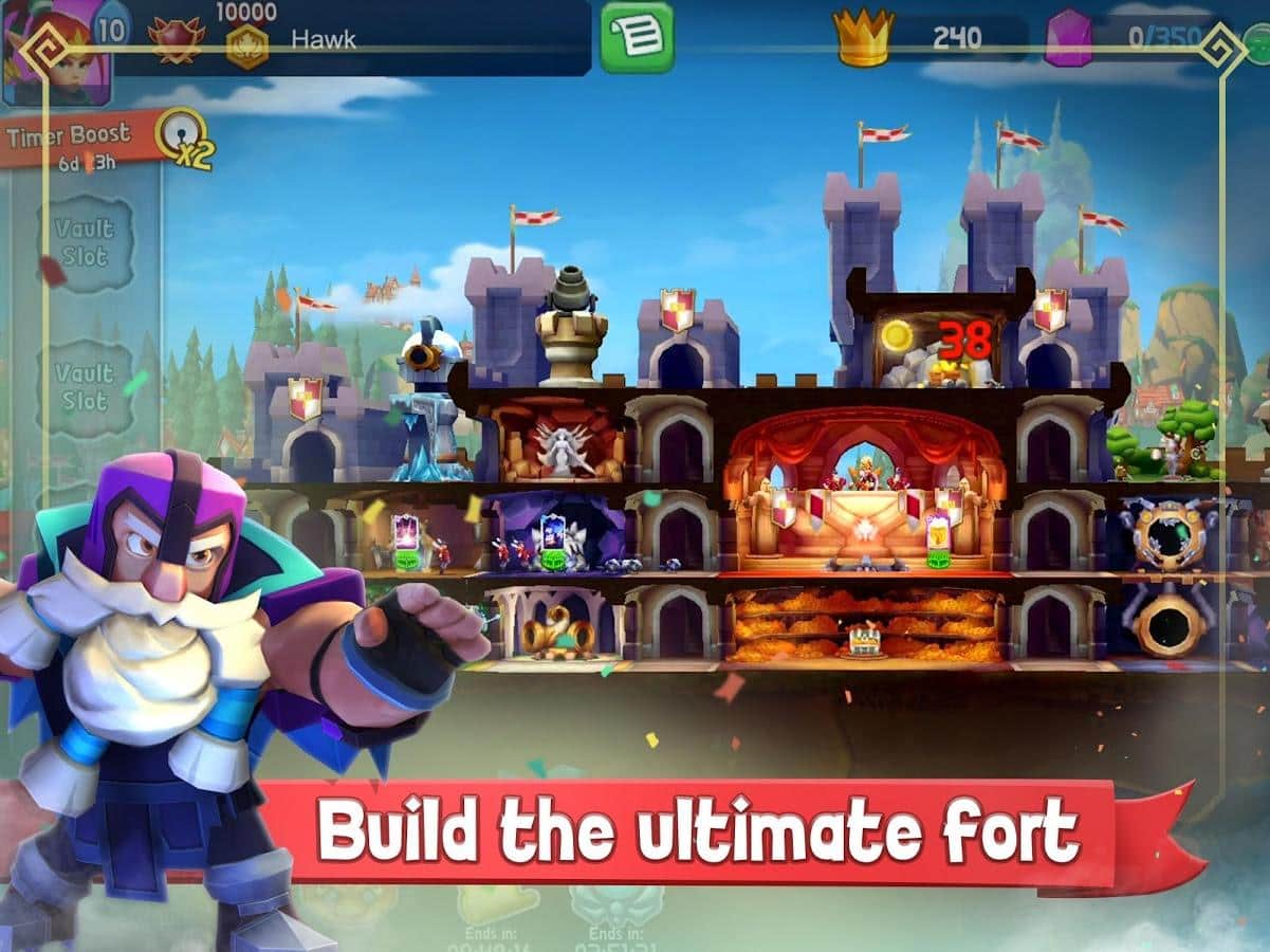 Fort Stars – стратегия на андроид, где вы будете штурмовать стены вражеского замка. Соберите непобедимую команду героев и нападайте на замки противников, стараясь заполучить их сокровища. Собирайте и коллекционируйте магические карты, которые помогут вам победить сражения с врагами. Обрушивайте стены замка противников, вступайте в схватки со стражей и победите сильных боссов и все ради сокровищ. По ходу игры открывайте новых персонажей и осваивайте новые умения и заклинания. Возводите свои стены замка и защищайте их любыми путями от сильных противников.