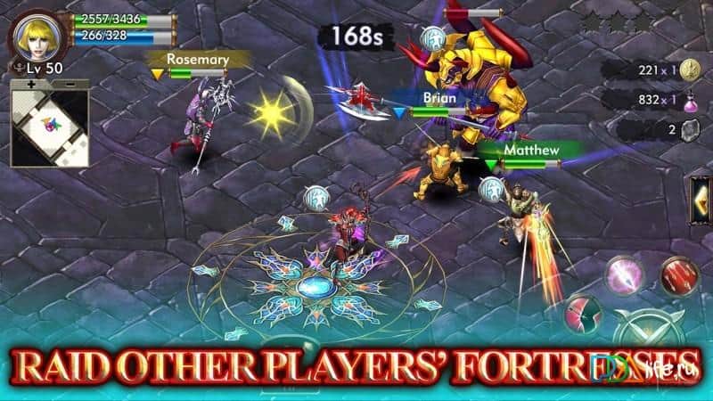 Fortress Legends - Постройте свой замок и поведите своего героя в бой, в неизведанные земли, и на чужие государства. Создавайте команду вместе со своими друзьями, и устраивайте битвы в реальном времени, в команде может быть до 4 человек. Оденьте своего персонажа в уникальную экипировку, научите его крутым способностям и вперед, разрушать чужие крепости. В игре множество различных элементов, орудий, доспехов и многого другого. Так что она затянет вас не на один час.